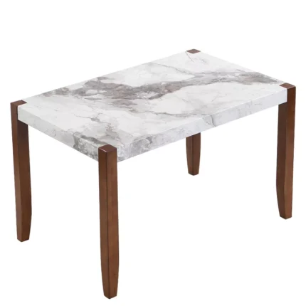 Rectangular Faux Marble Dining Table for 4 with Rubber Wood Legs – White Top & Brown Frame