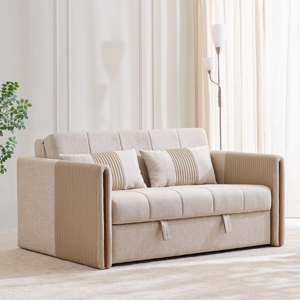 Be the first to review “2-Seater Sofa Bed with Cushions – Beige” Cancel reply
