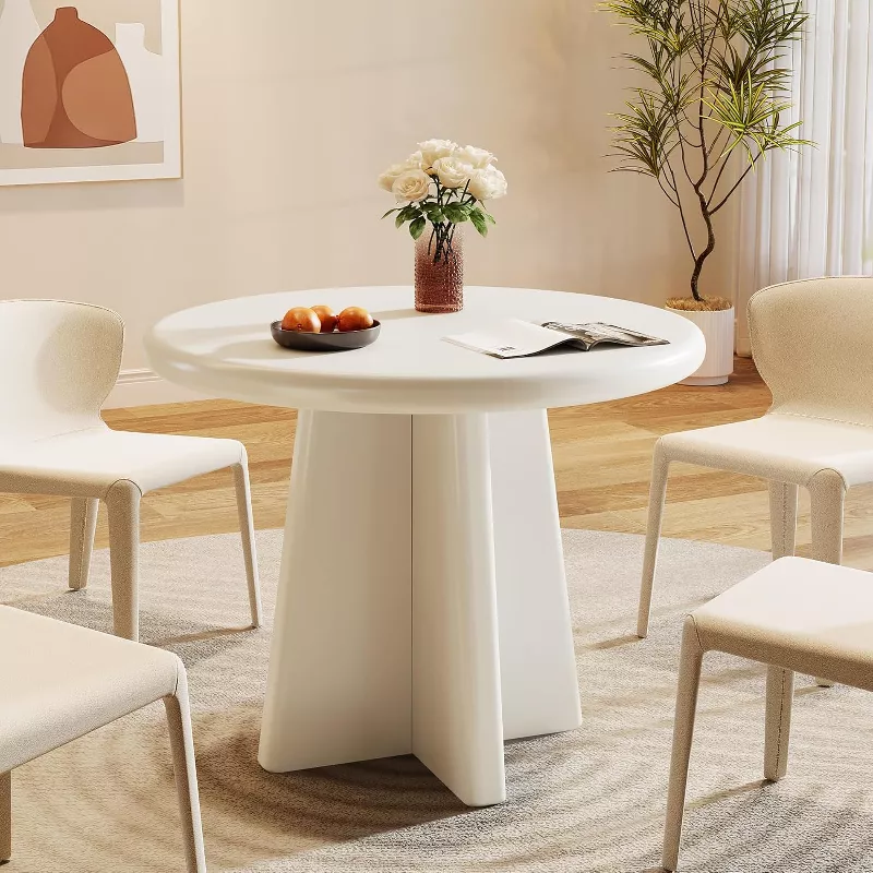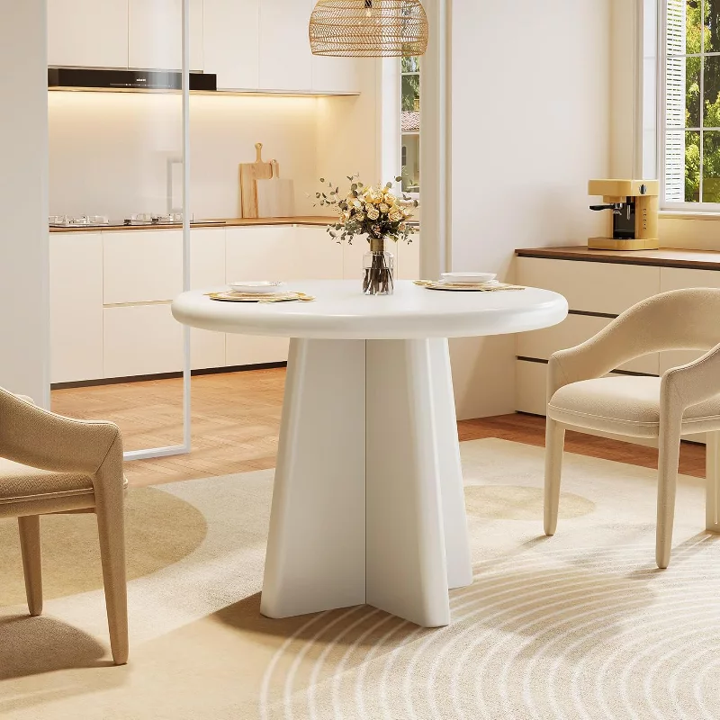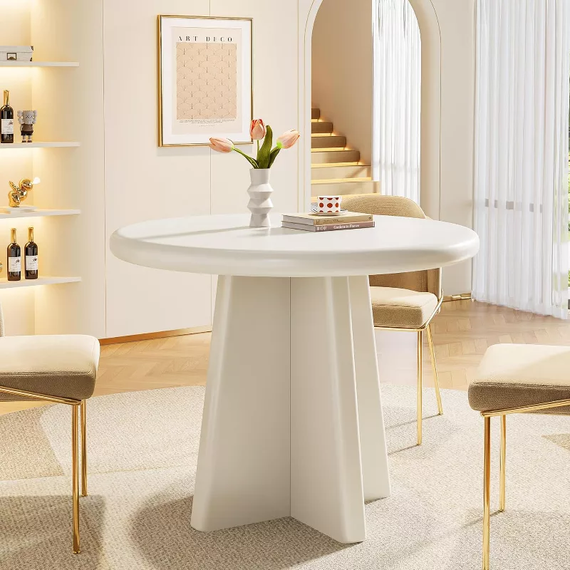 Create a clean and elegant dining space with this 31.5-inch round dining table designed for small homes and cozy dining areas. Crafted from solid wood with a smooth white finish, this table features a sturdy pedestal base that provides excellent stability and more legroom. Its compact round shape makes it perfect for breakfast nooks, apartments, or intimate dining settings while comfortably seating 2–4 people.