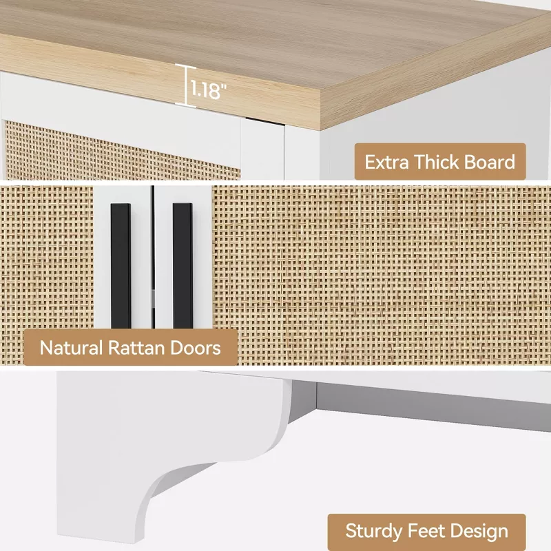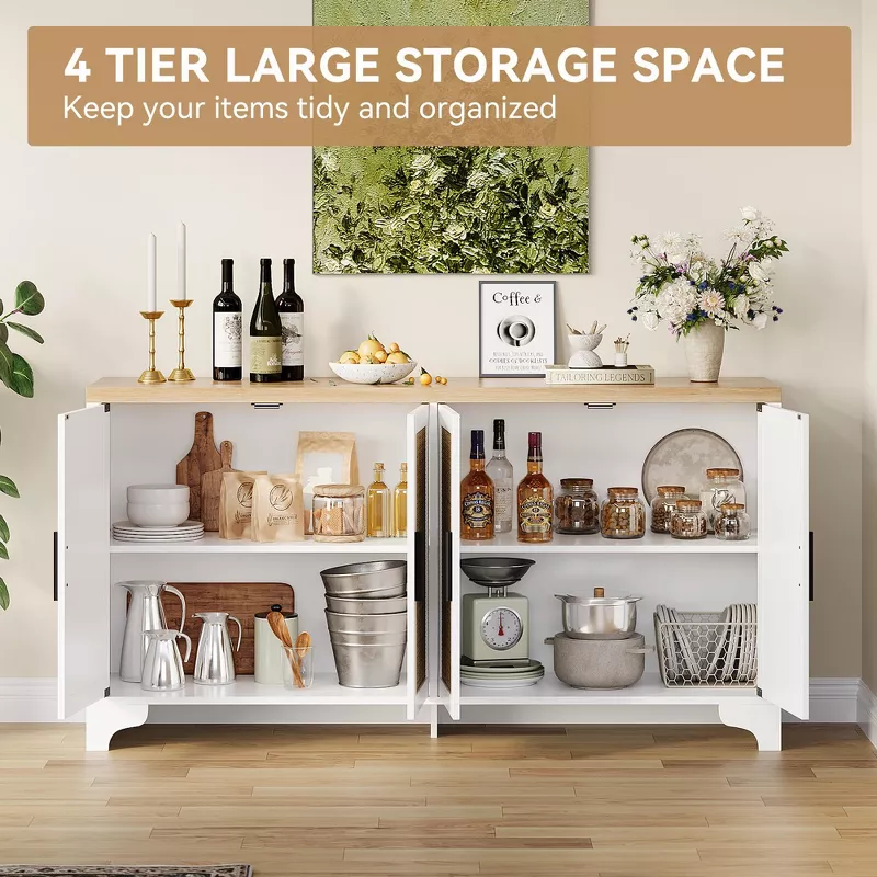 4-Door Sideboard Buffet Cabinet with Natural Rattan Design