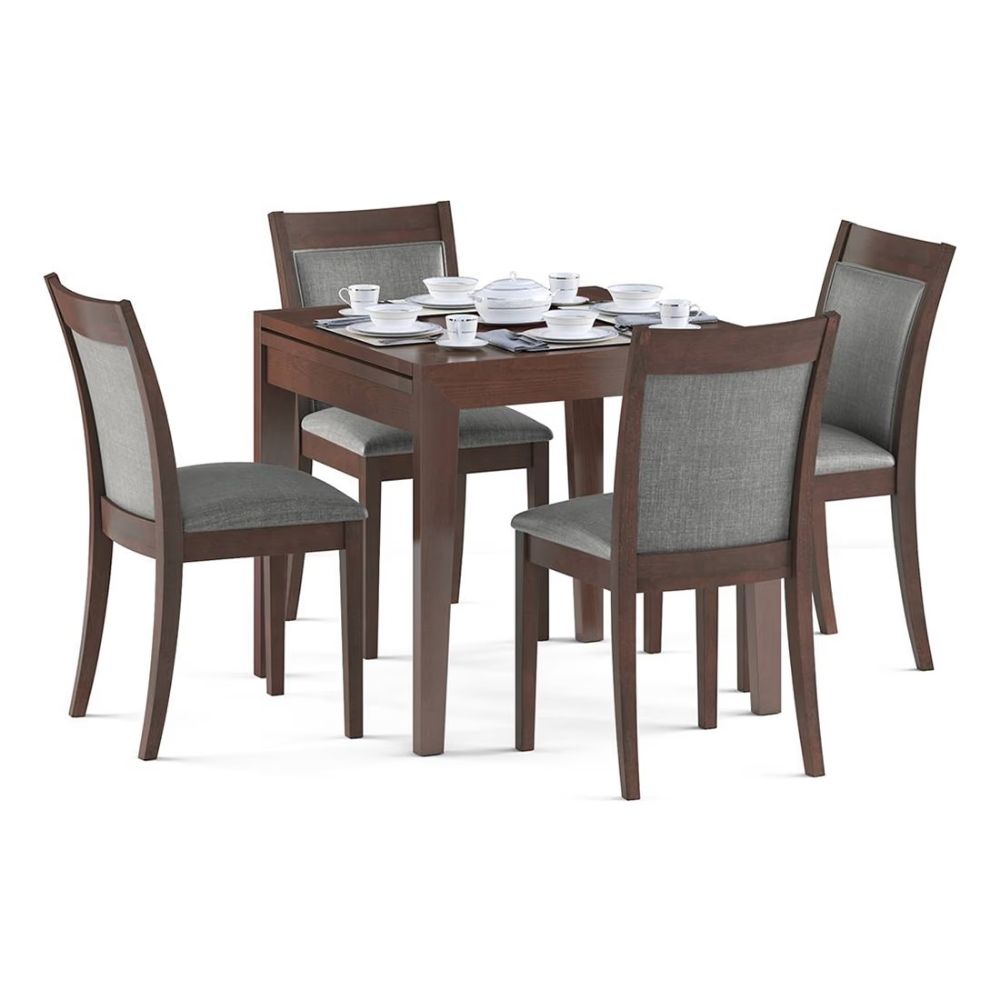 4 Seater Dining Table Set (Colour- Grey , Finish- Dark Walnut)