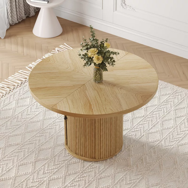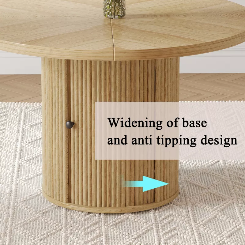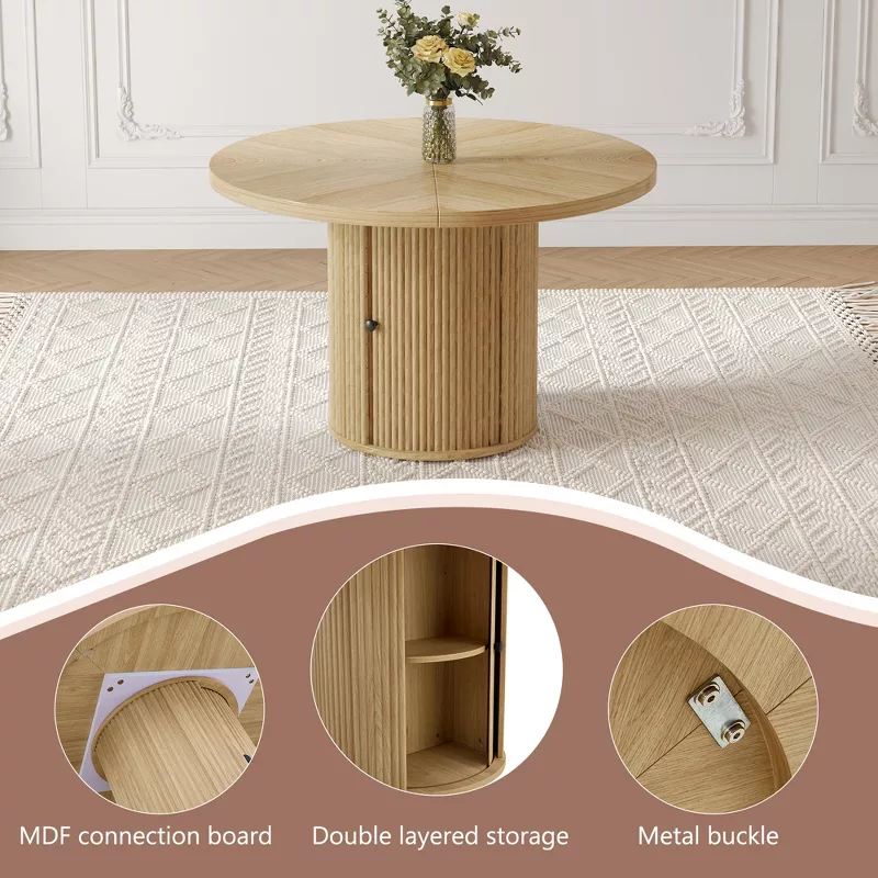 Upgrade your dining space with this beautifully designed round wooden dining table featuring a built-in double-layer storage base. Crafted from solid wood, this table combines elegant style with everyday functionality. The spacious 47.2-inch round tabletop comfortably seats 4 to 6 people, while the smart storage base keeps dining essentials, décor, or books neatly organized and within easy reach.