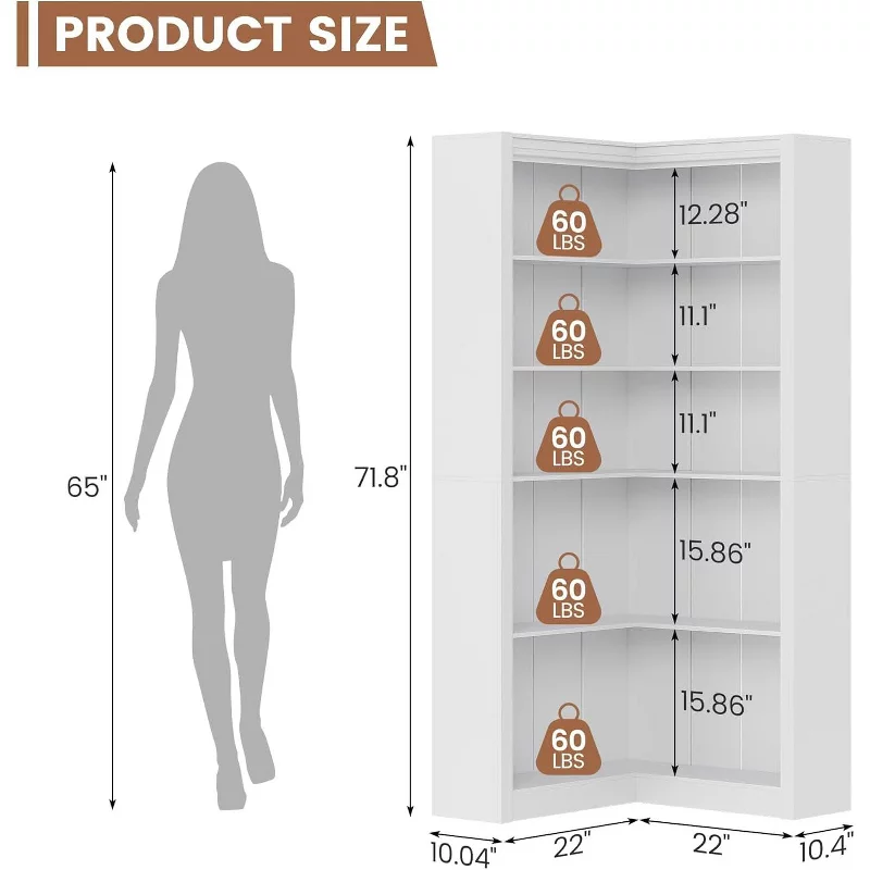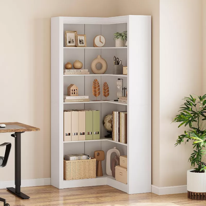 Add rustic charm and smart storage to your home with this 5-tier wooden farmhouse bookcase. Designed with a tall, slim profile, this bookshelf provides plenty of space for books, décor, plants, and decorative accents while taking up minimal floor space. Its warm farmhouse-style look blends beautifully with modern, rustic, or traditional interiors.