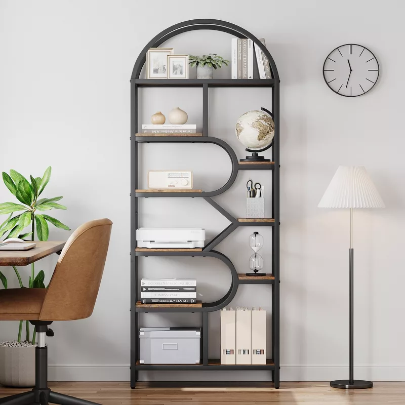 6-Tier Arched Bookcase – 81.7″ Tall Geometric Open Storage Display Shelf