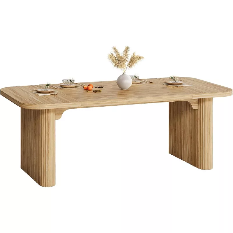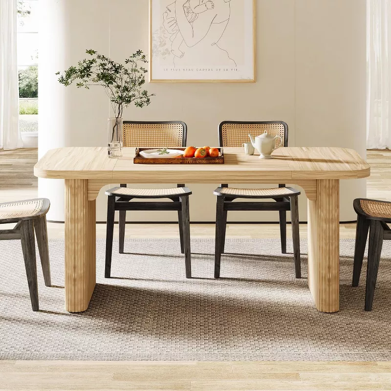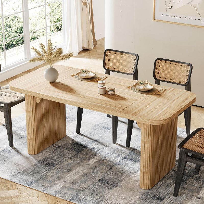 Add modern elegance and strength to your dining room with this 62-inch wooden dining table designed for everyday use and entertaining. Crafted from durable solid wood, this table features a spacious rectangular top and a sturdy double pedestal base for superior stability. With a 200 lb weight capacity and a rich brown finish, it offers both beauty and dependable performance for family meals and gatherings.