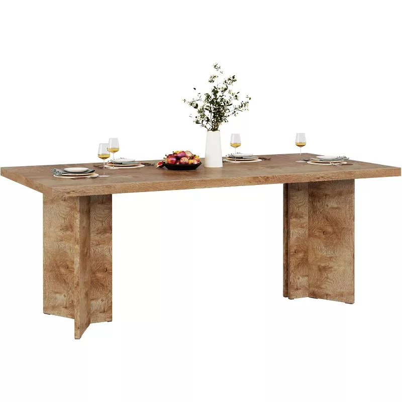 Upgrade your dining room with this beautifully crafted 63-inch solid wood dining table. Designed to comfortably seat 4 to 6 people, this table features a smooth brown wood tabletop supported by a sturdy pedestal base that provides excellent stability and generous legroom. Its clean rectangular shape and rich wood finish make it a perfect fit for both modern and traditional dining spaces.
