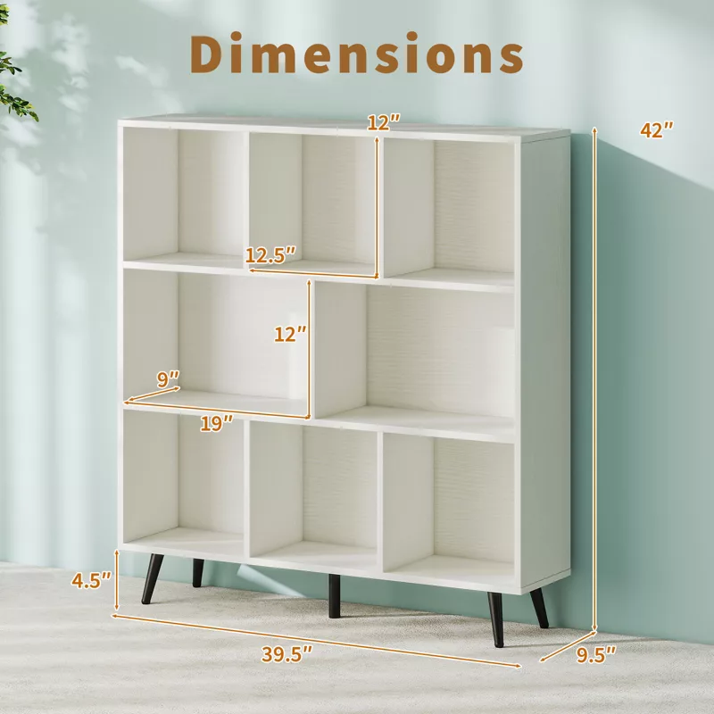 8-Cube 3-Tier Bookcase with Metal Legs – Modern Storage Organizer Shelf for Home & Office