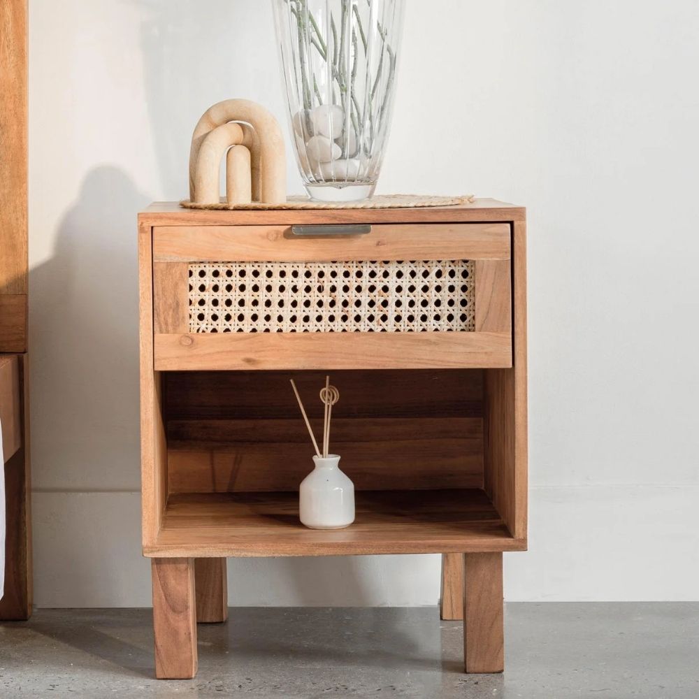 Acacia Wood Bedside Table With Drawer