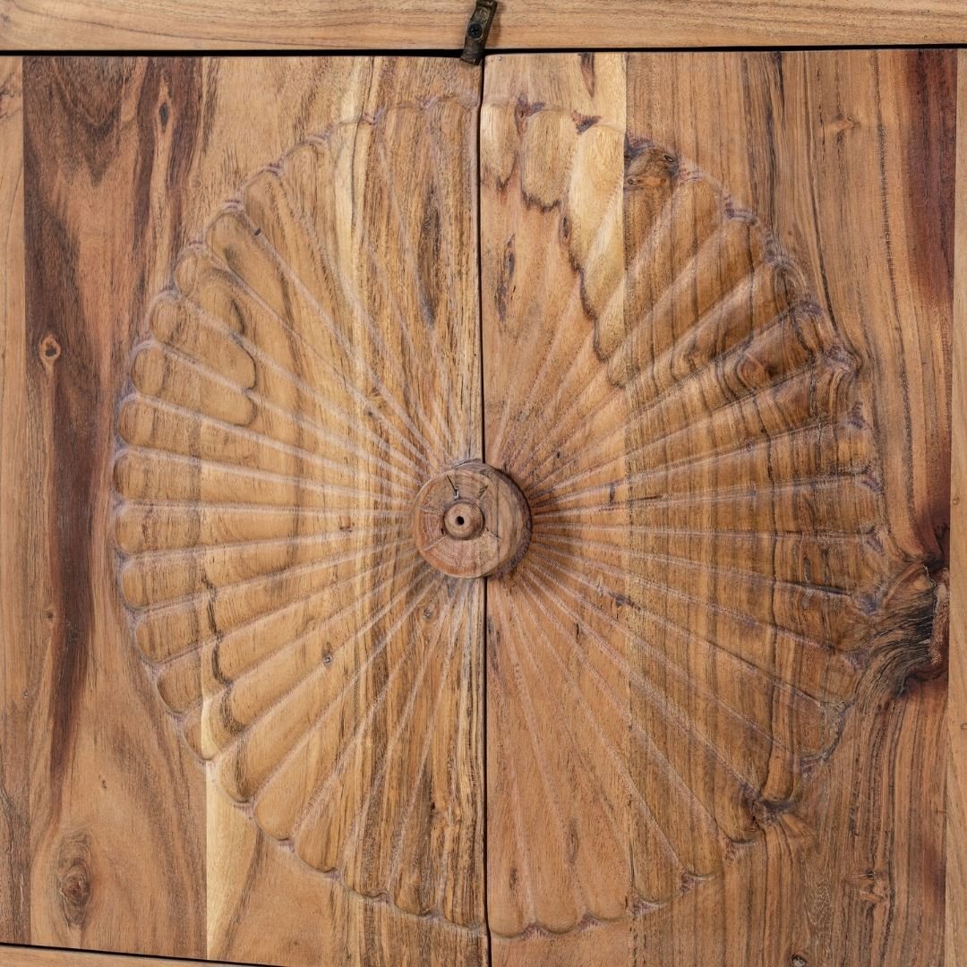 Bring warmth and sophistication into your home with this carved acacia wood sideboard, a perfect combination of natural beauty and functional design. Crafted from solid acacia wood, this piece showcases stunning wood grain patterns, enhanced by delicate, hand-carved detailing that adds texture and character.
