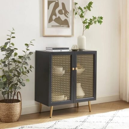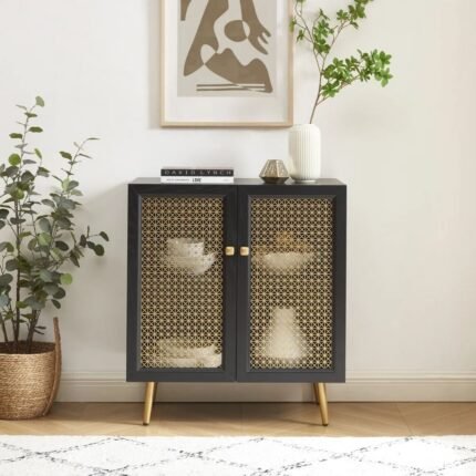 Designed for both storage and style, the four-door and two drawers cabinet offers ample space to organise dining essentials, books, or household items, making it ideal for dining rooms, living spaces, or entryways. The minimalist wood and brass handles add a subtle touch of elegance, while the sturdy tapered legs provide a modern yet timeless appeal.