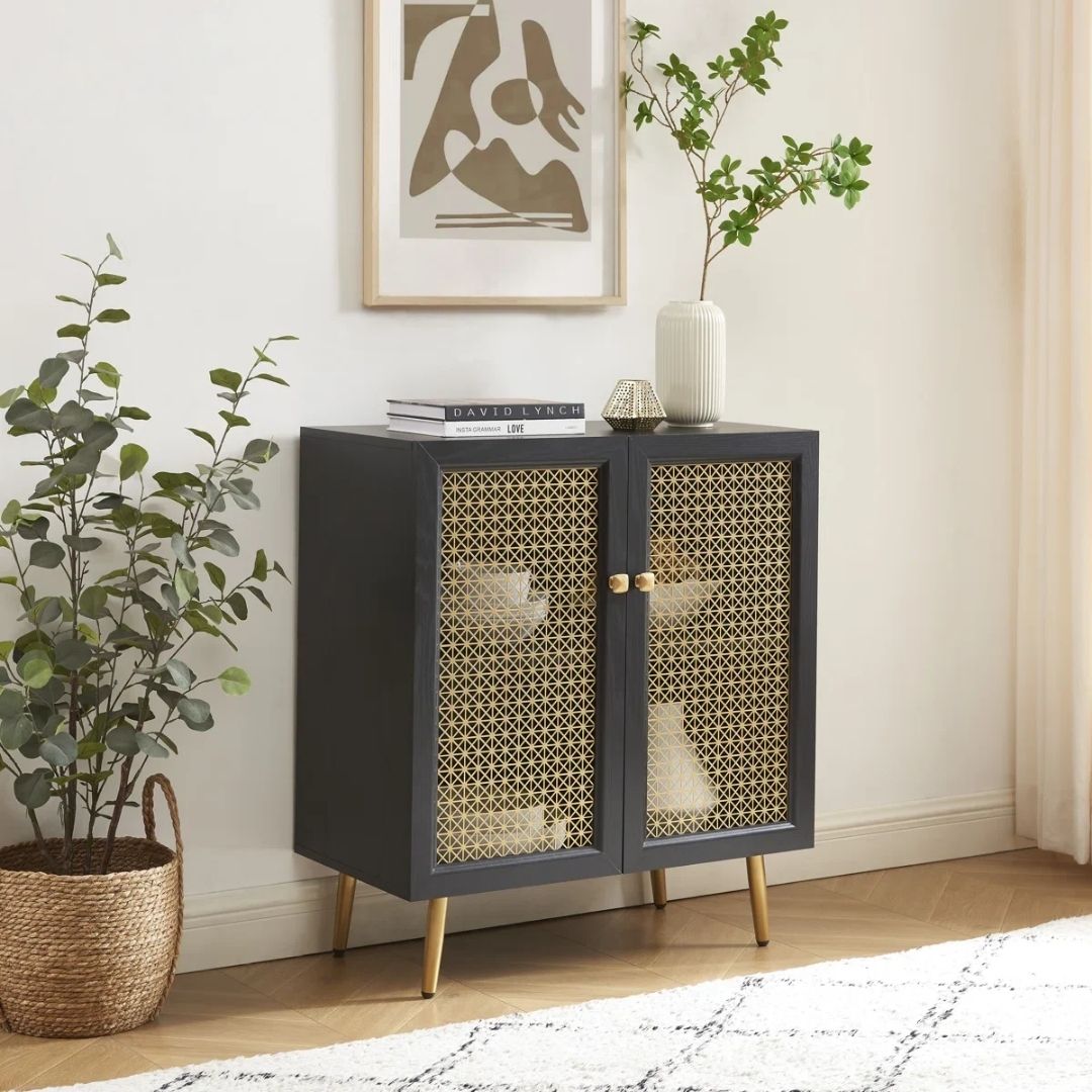 Sanskriti Modern 43.39'' W 2-Drawer And 3-Door Rattan Sideboard With Adjustable Shelves