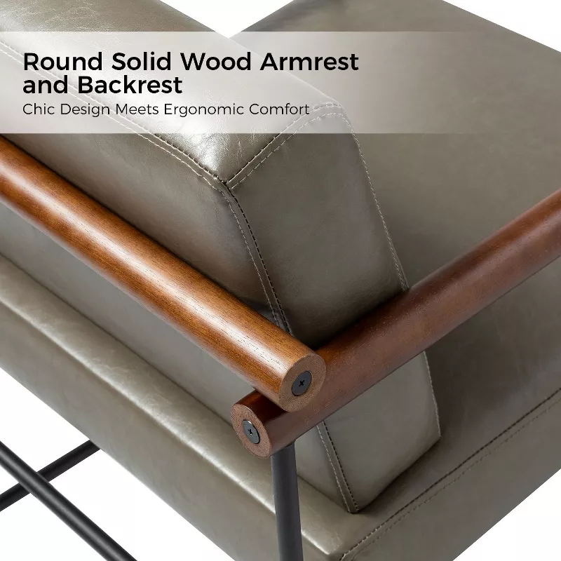 Upgrade your living space with this contemporary armchair featuring a sturdy metal base and uniquely crafted solid wood armrests. Designed for both style and comfort, this chair offers a supportive seat, a well-proportioned backrest, and elevated legs for a light, modern look. Its durable construction and sleek silhouette make it ideal for living rooms, bedrooms, offices, or reading corners, blending industrial charm with natural warmth.