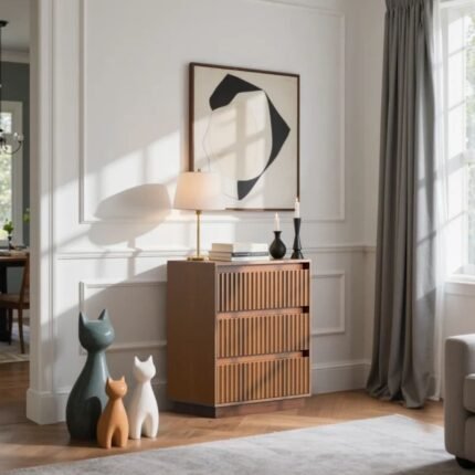 Vistara Luxe Wooden Dresser With 3 Drawers & Floral Carved Accents