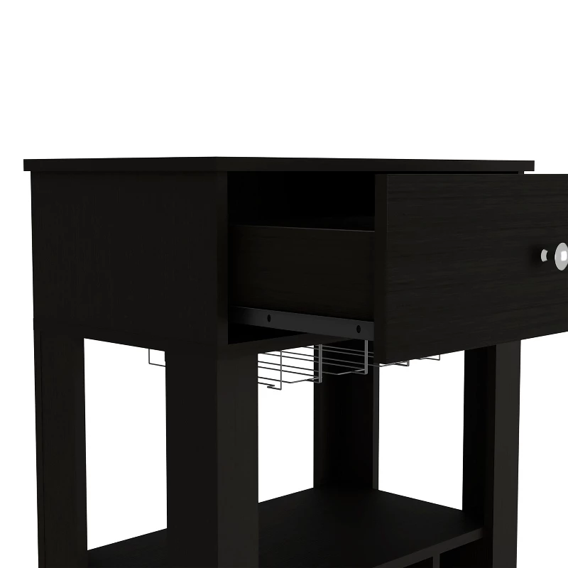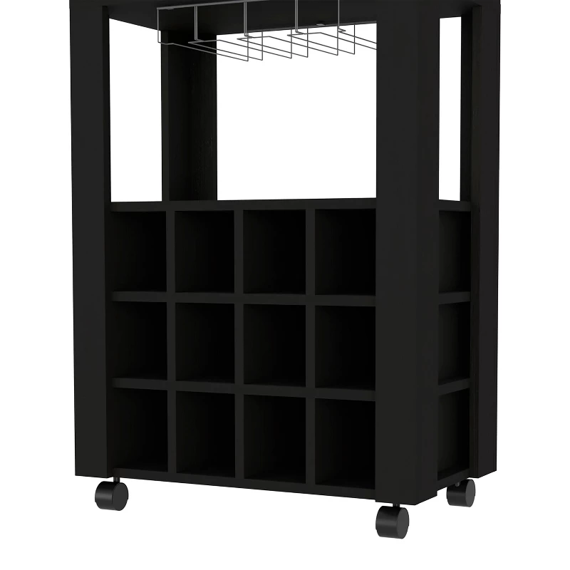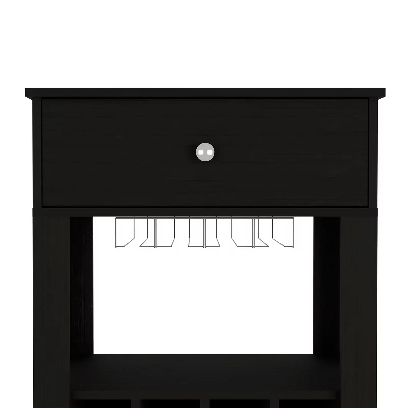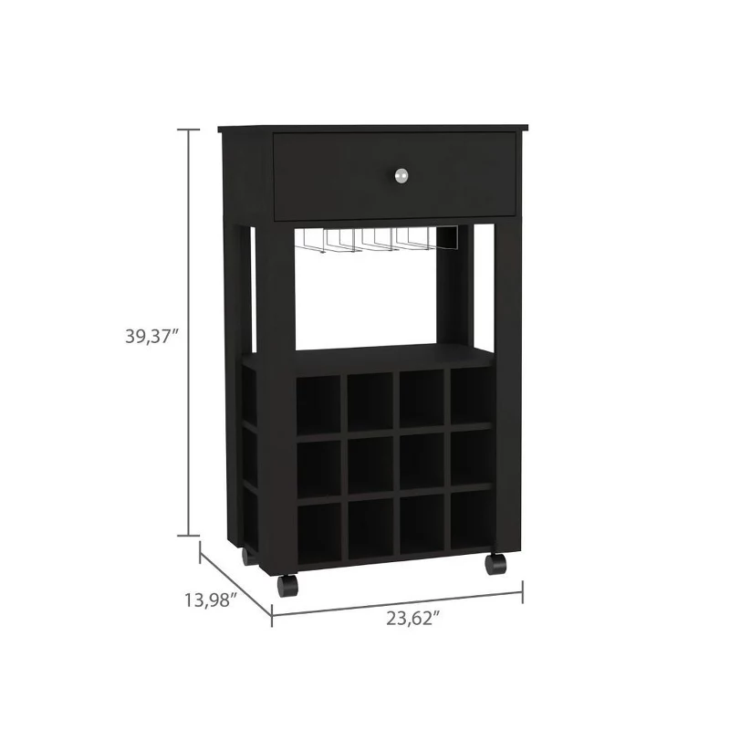 Bar and Coffee Cart with Bottle Racks and Drawer – Black Finish