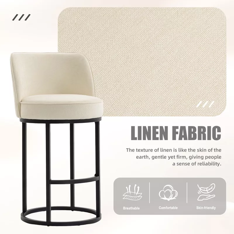 Bar Stools Set of 2 – Modern Barrel Design with Linen Fabric Upholstery