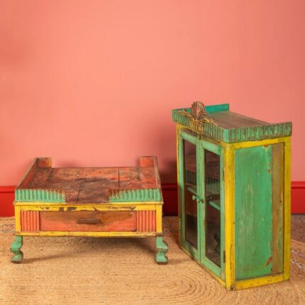 Designed with double front doors that open onto a spacious interior shelf, this cabinet offers practical storage while also serving as a striking decorative piece. Perfect for adding colour and character, it works beautifully in living rooms, bedrooms, hallways, or creative spaces.