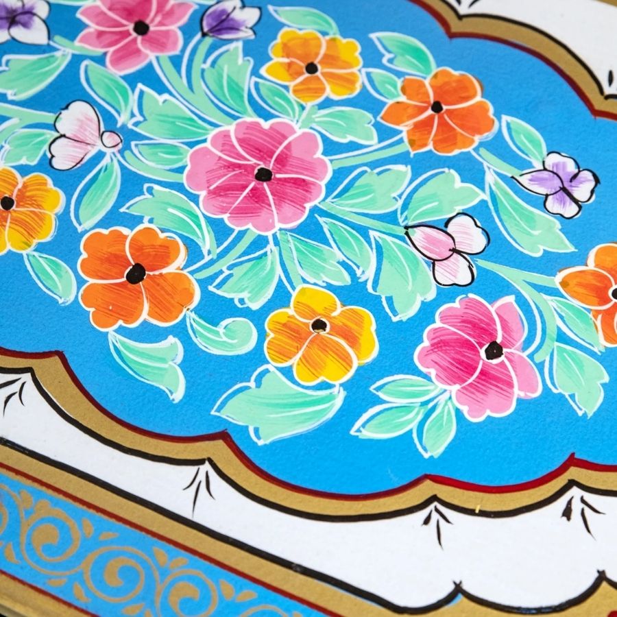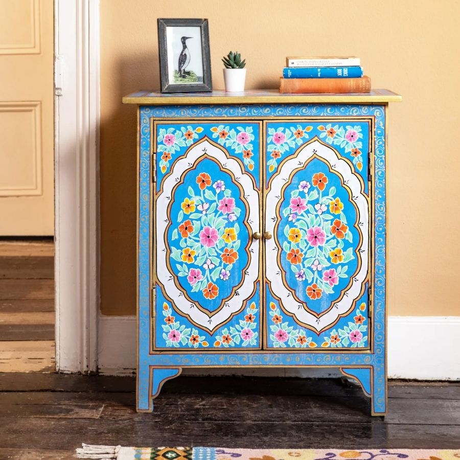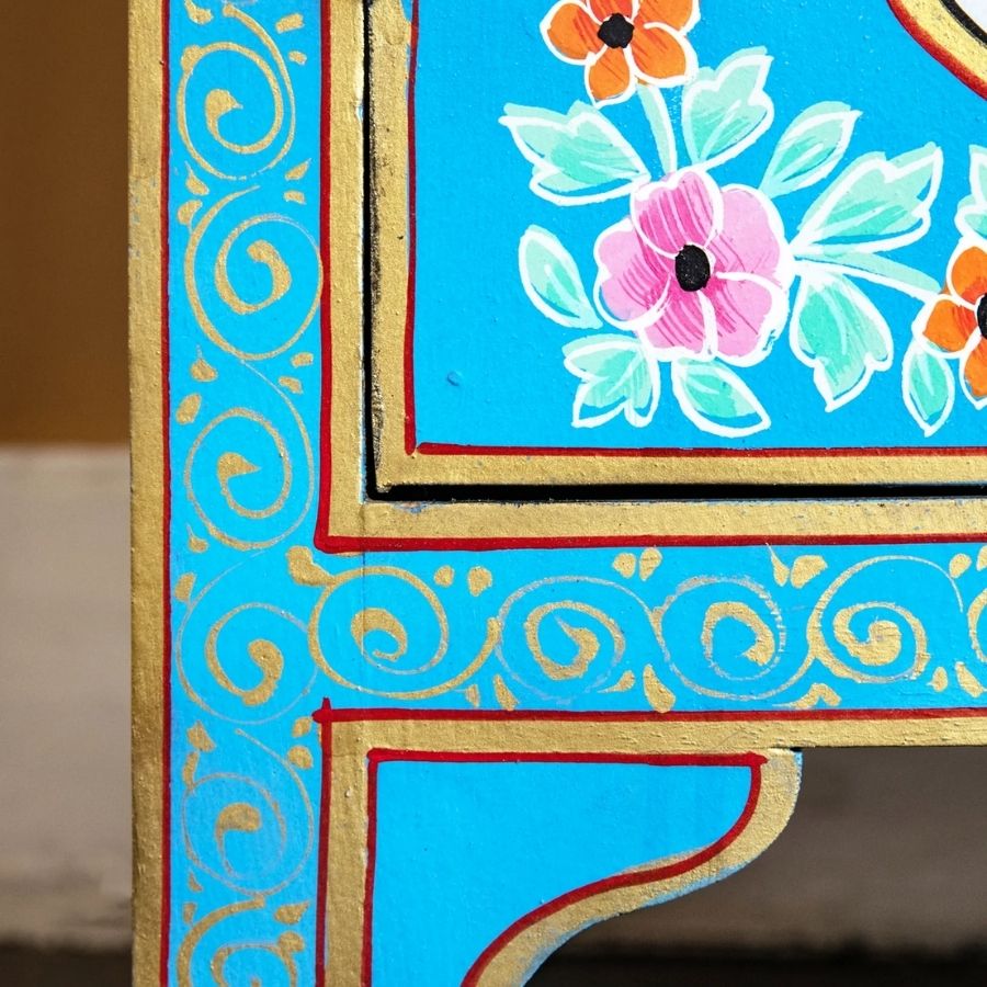 Bring artistic beauty and vibrant charm into your home with this Blue Floral Hand-Painted Wooden Cabinet. Expertly handcrafted and hand painted, this stunning cabinet features intricately detailed floral patterns that add elegance and personality to any room.