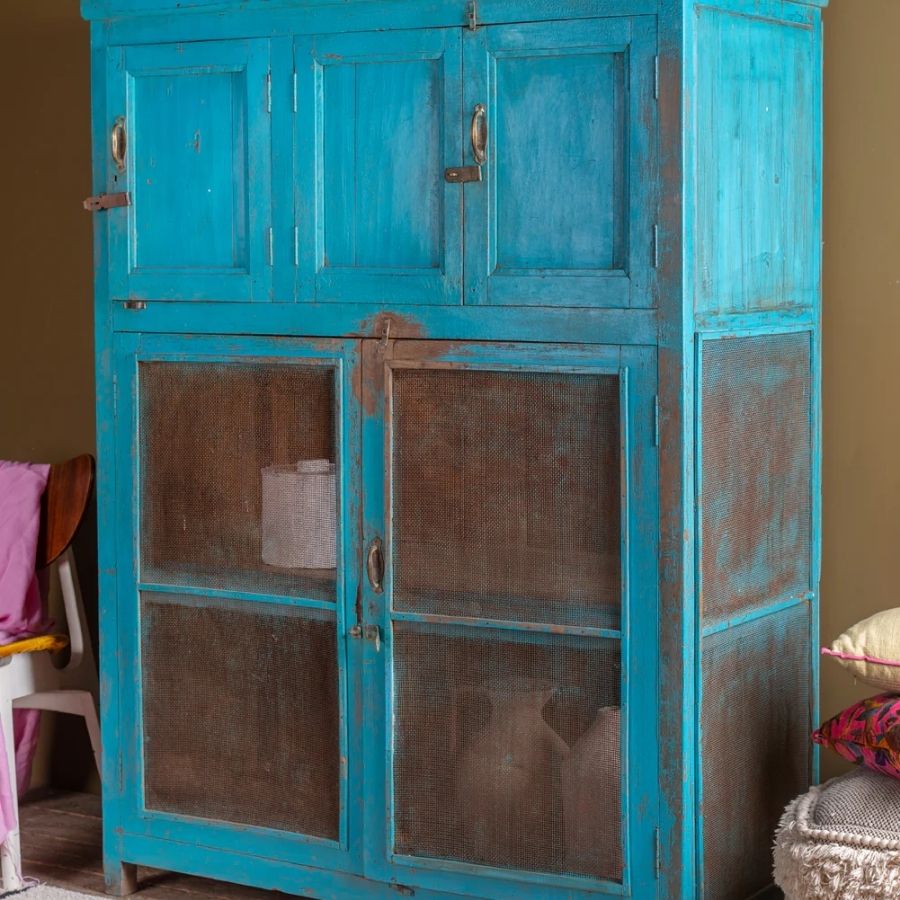 Be the first to review “Blue Wooden Vintage Storage Cupboard with Mesh Panels”