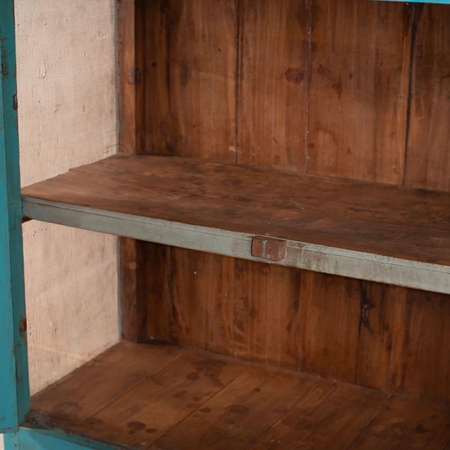 Blue Wooden Vintage Storage Cupboard with Mesh Panels