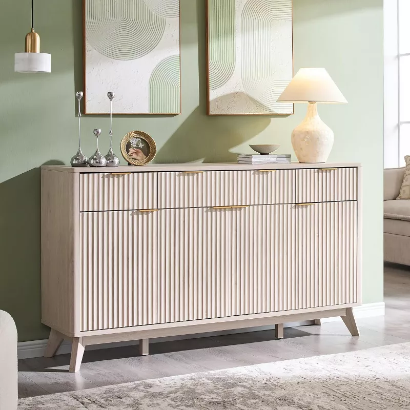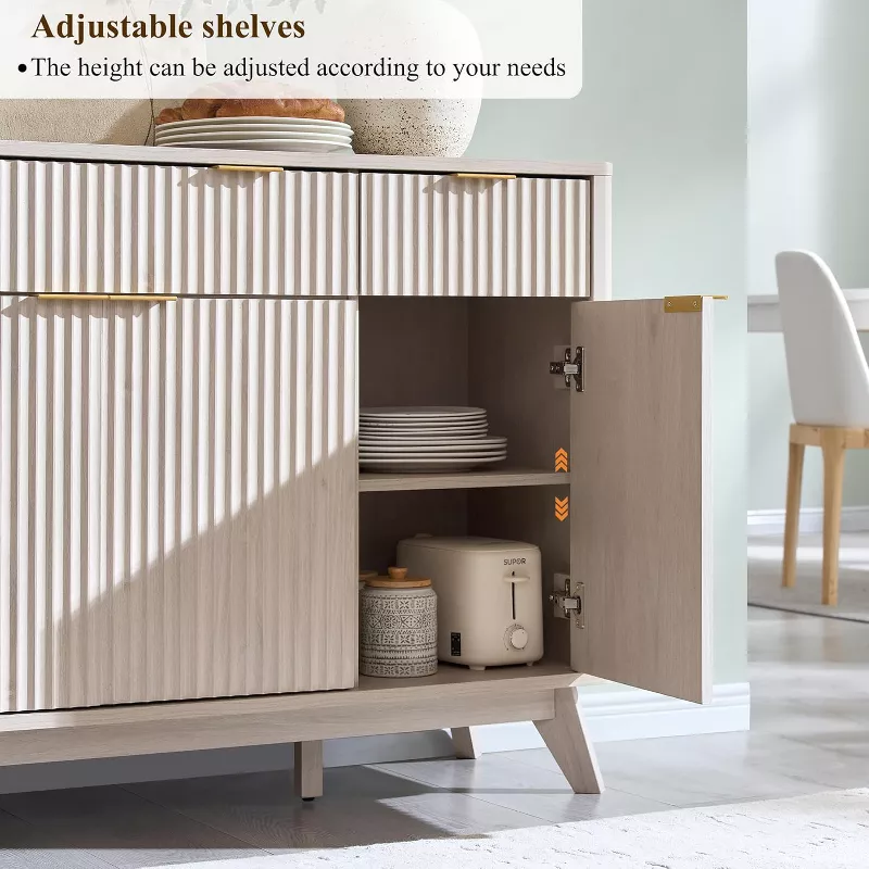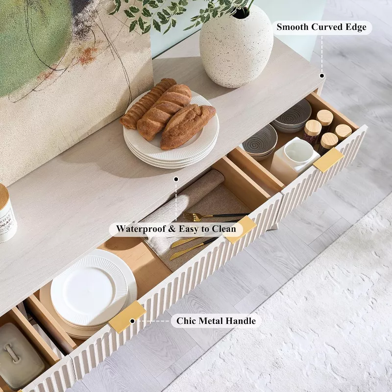 Enhance your dining or living space with this stylish and functional buffet sideboard cabinet. Designed with a modern fluted finish, this versatile unit works perfectly as a coffee bar, storage cabinet, or serving console. Crafted from durable wood composite, it offers generous storage with multiple drawers, adjustable shelves, and spacious cabinets, making it both elegant and practical for everyday use.