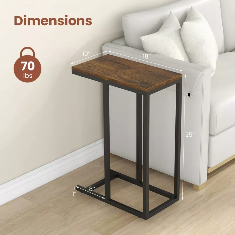C-Shaped Side Table – Industrial Sofa Table with Wood Top and Metal Frame