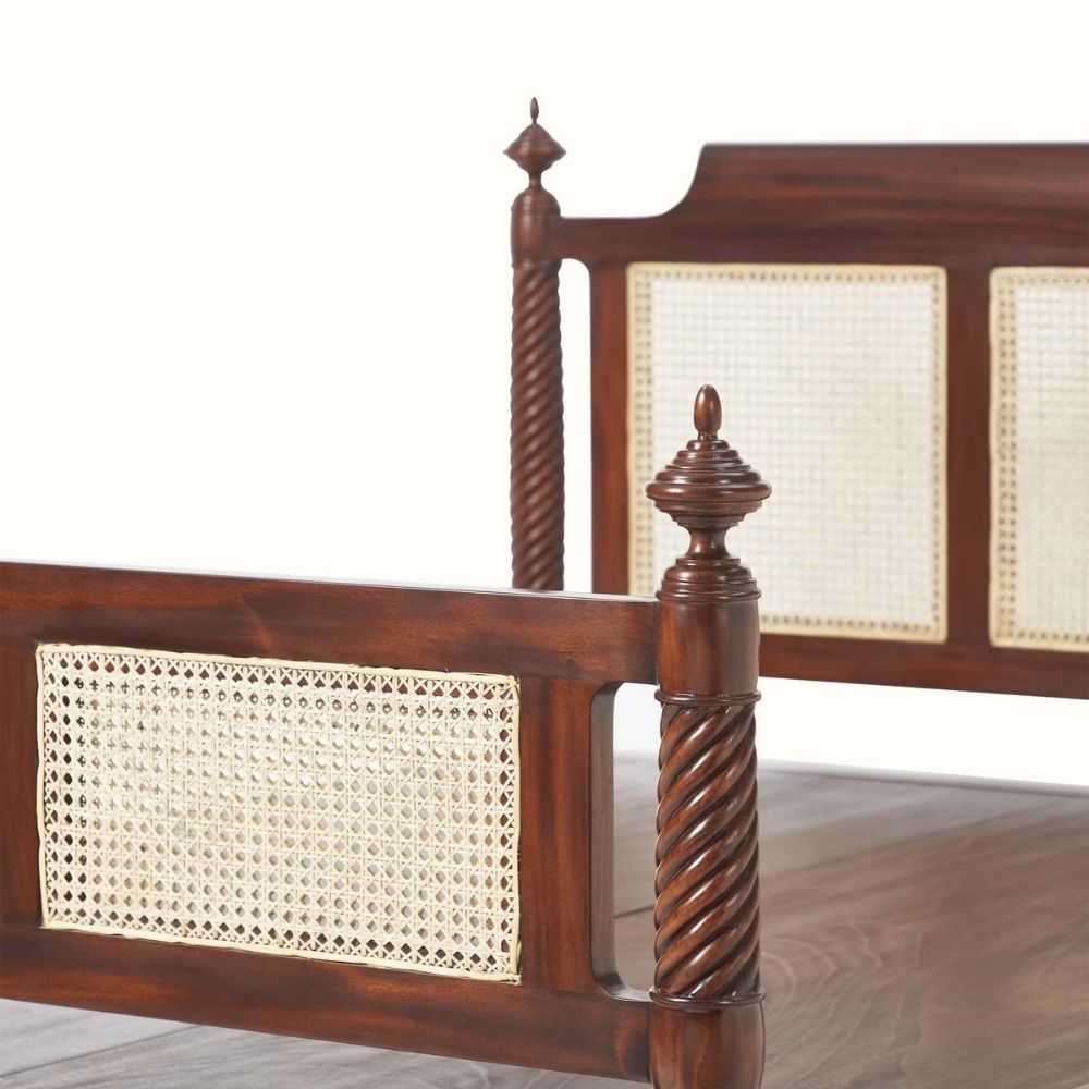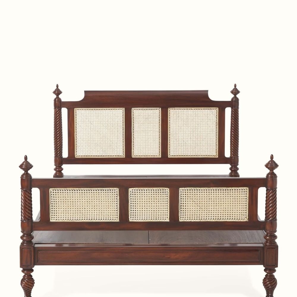 Bring timeless elegance and artisan luxury into your bedroom with our Carved Mahogany Wood & Cane Queen-Size Bed. Crafted from rich, solid mahogany wood, this bed showcases exquisite hand-carved details that highlight its classic sophistication. The headboard and footboard feature handwoven natural cane, adding warmth, texture, and an airy, organic charm that balances the deep tones of the mahogany frame.