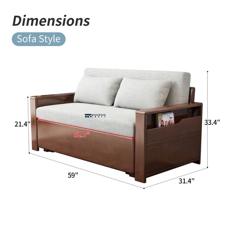 Classic Comfort Wooden Sofa Cum Bed with Storage Arms