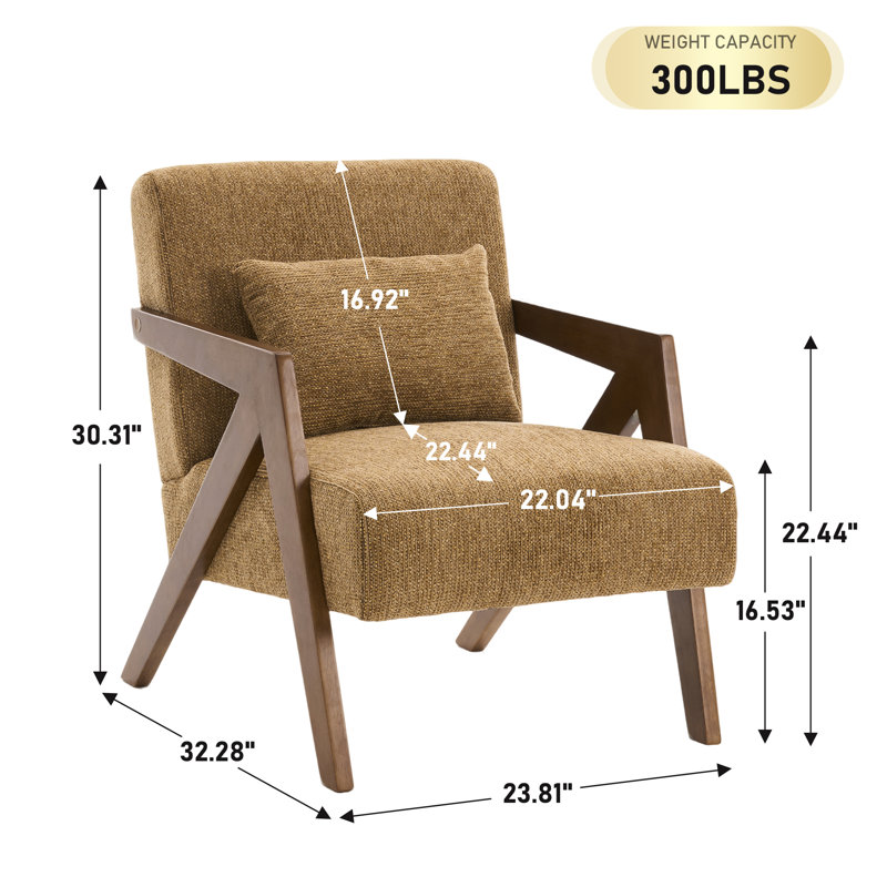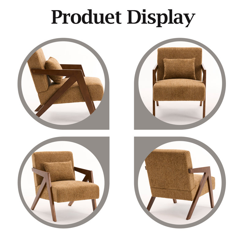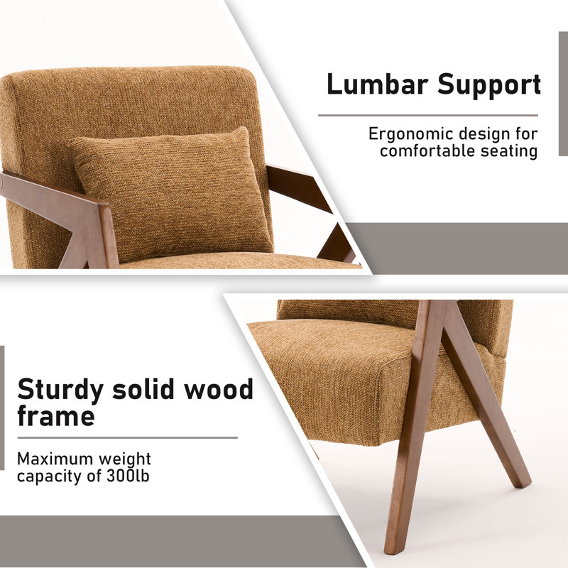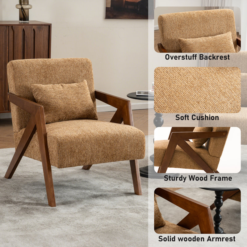 Classic Mid-Century Accent Armchair with Chenille Upholstery and Solid Wood Foundation