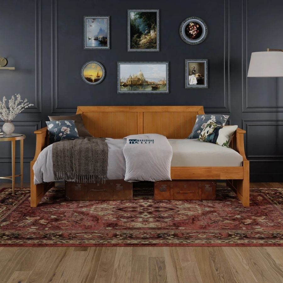 Classic Solid Wood Daybed Sofa with Armrests (Honey Oak Finish)