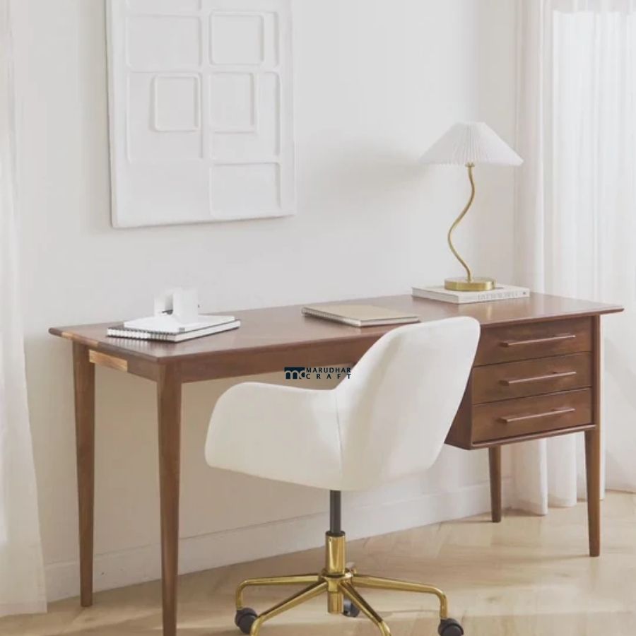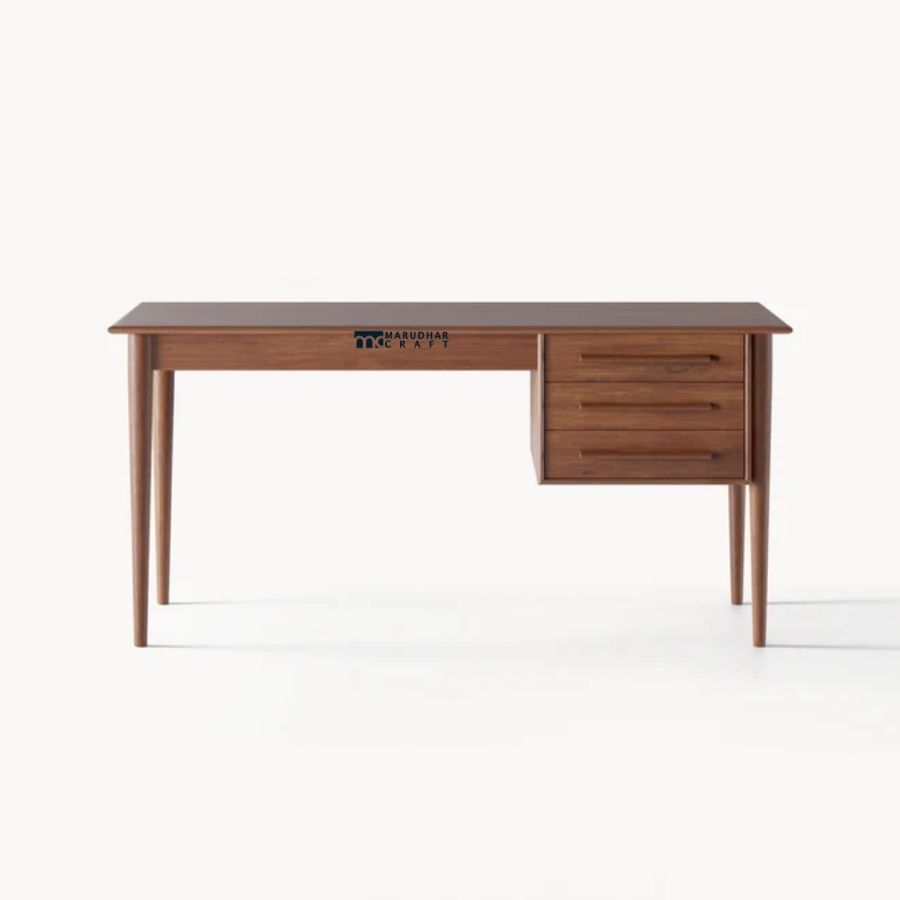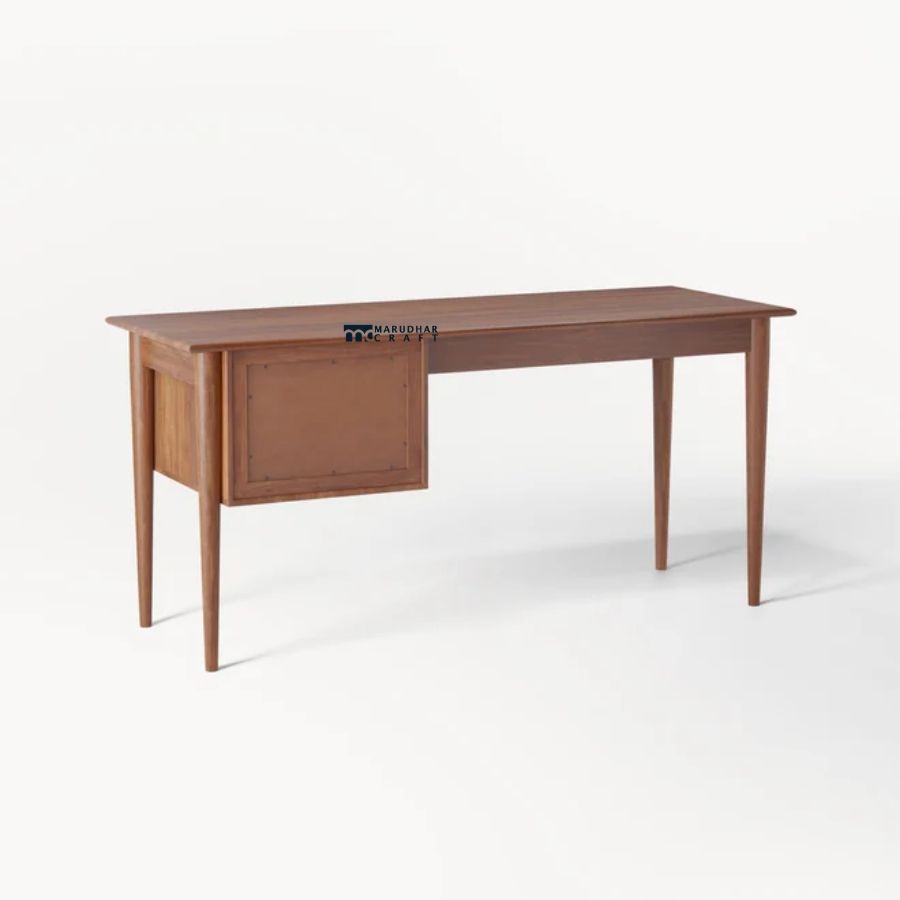 A classic study desk crafted from premium solid wood, featuring a spacious tabletop and a functional drawer unit for organized storage. Its timeless design and warm wood finish make it a perfect addition to home offices, study rooms, or bedrooms.