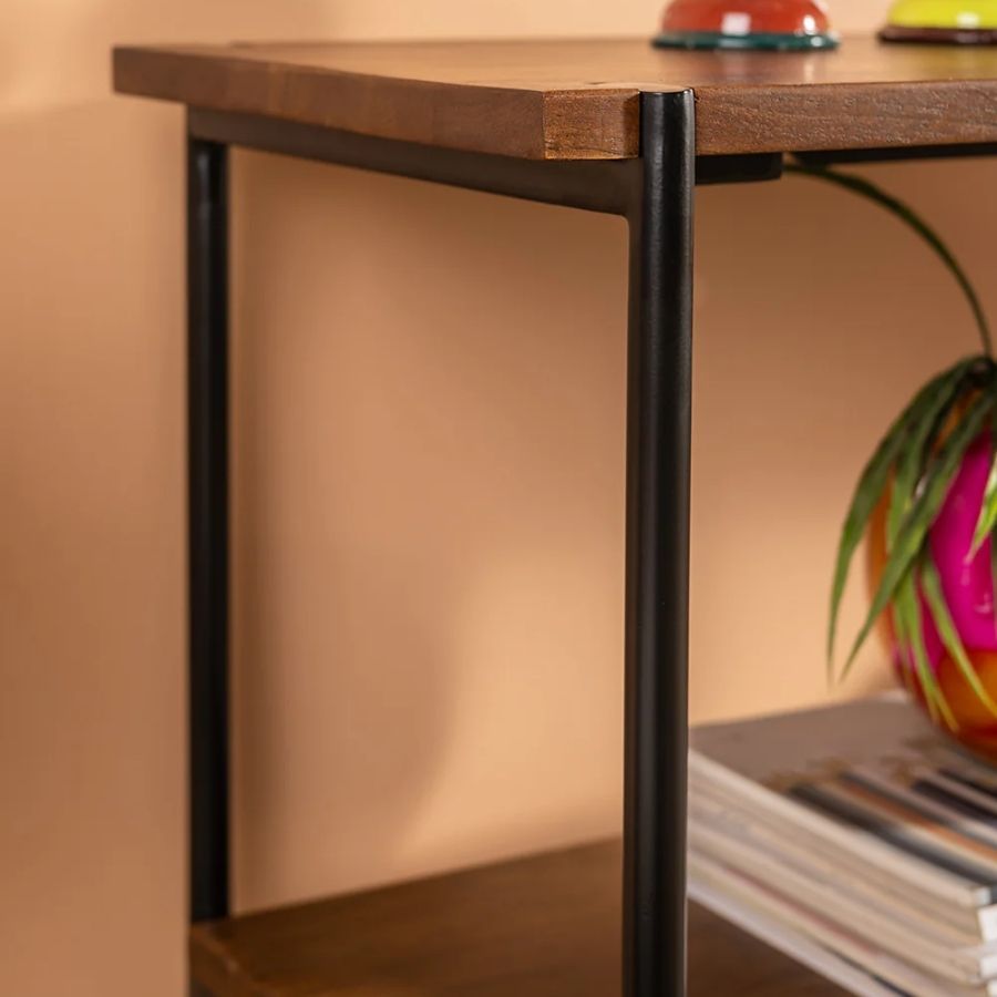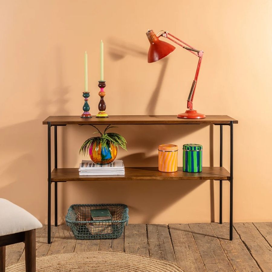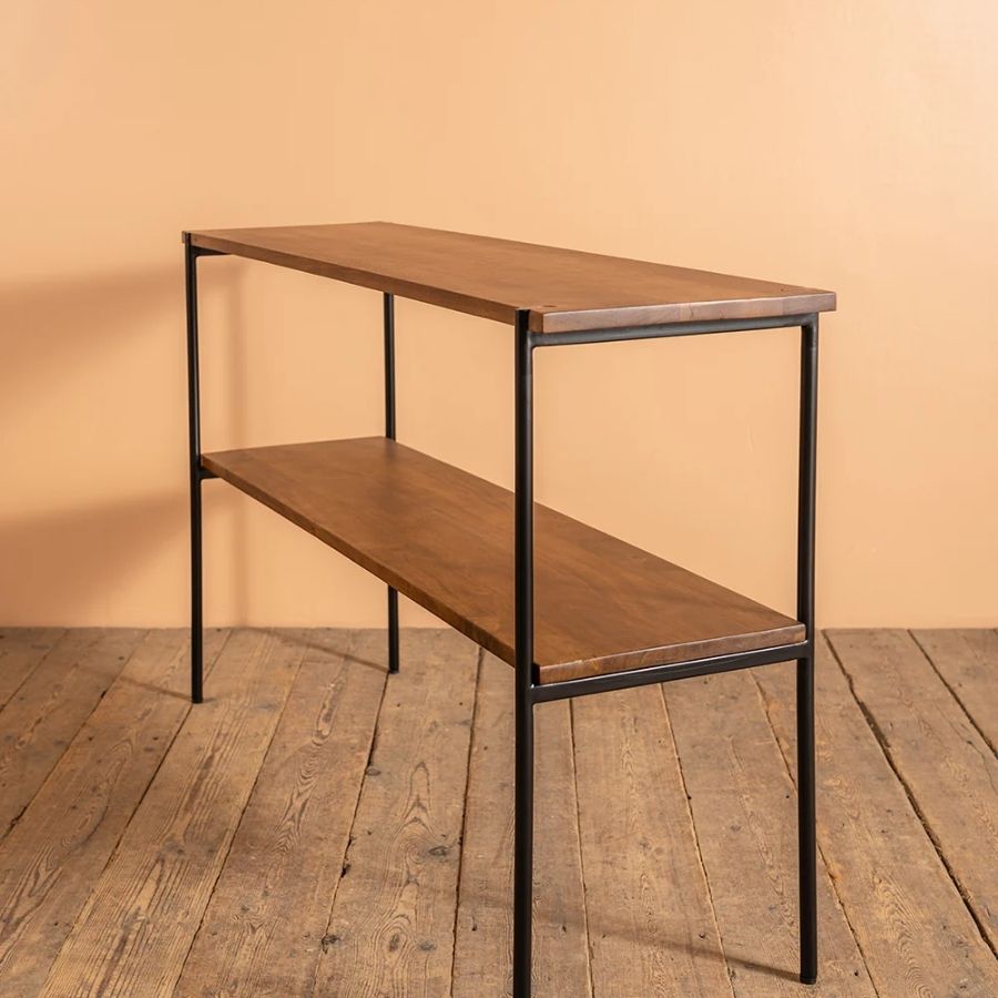 Conrad Acacia Wood Console Table with Umber Finish and Black Metal Frame