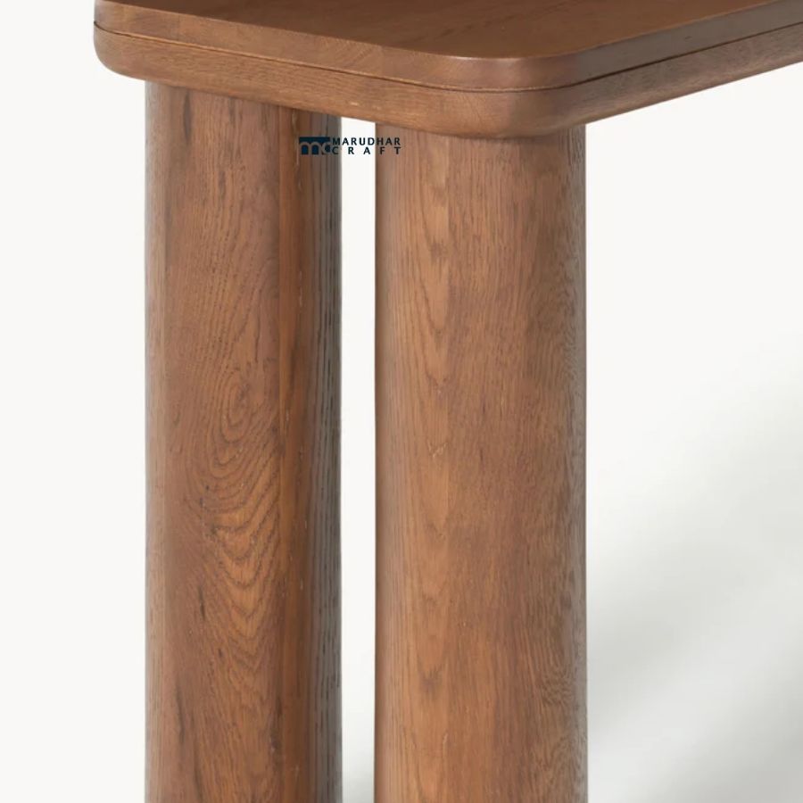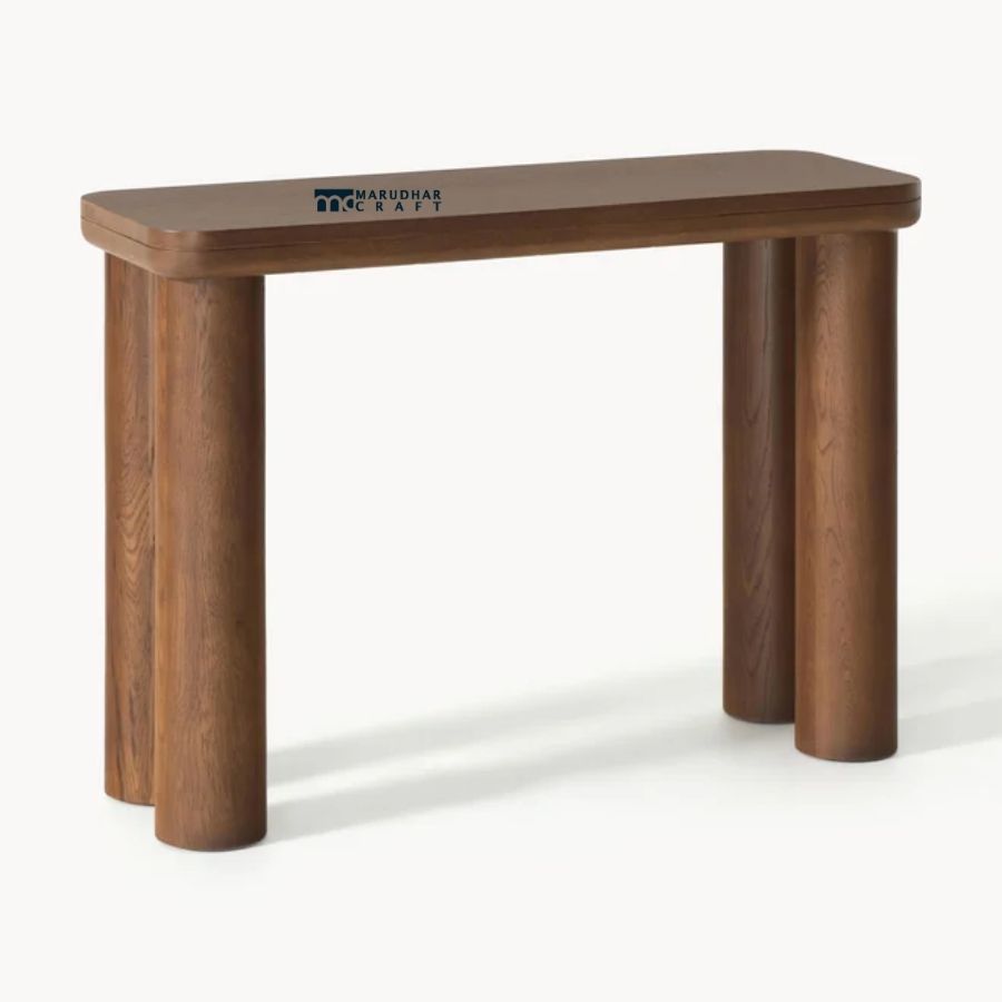 Elevate your interior with this modern solid wood console table, designed with a clean rectangular top and bold cylindrical legs. Crafted from premium solid wood and finished in a rich dark walnut tone, this table delivers both visual strength and refined elegance. Its sculptural form and compact footprint make it ideal for entryways, living rooms, hallways, or as an accent console in contemporary and luxury interiors.