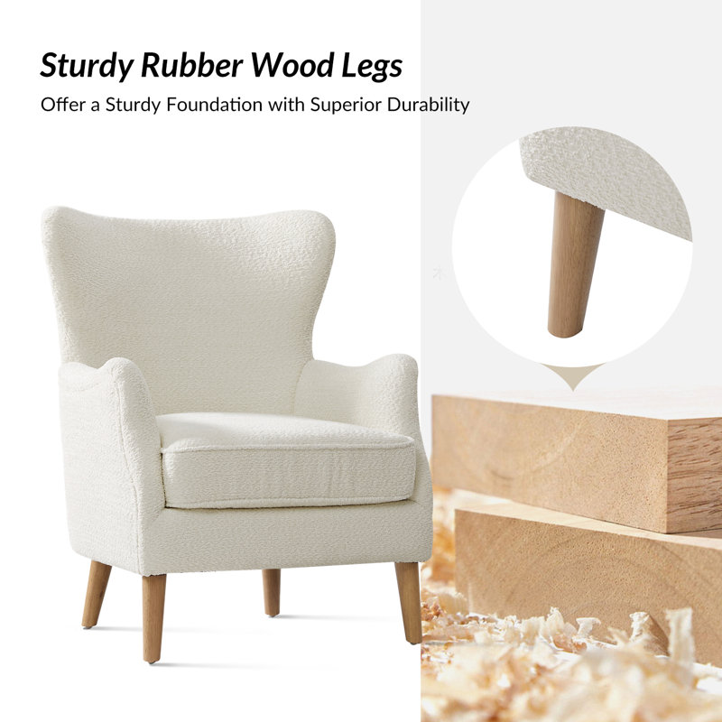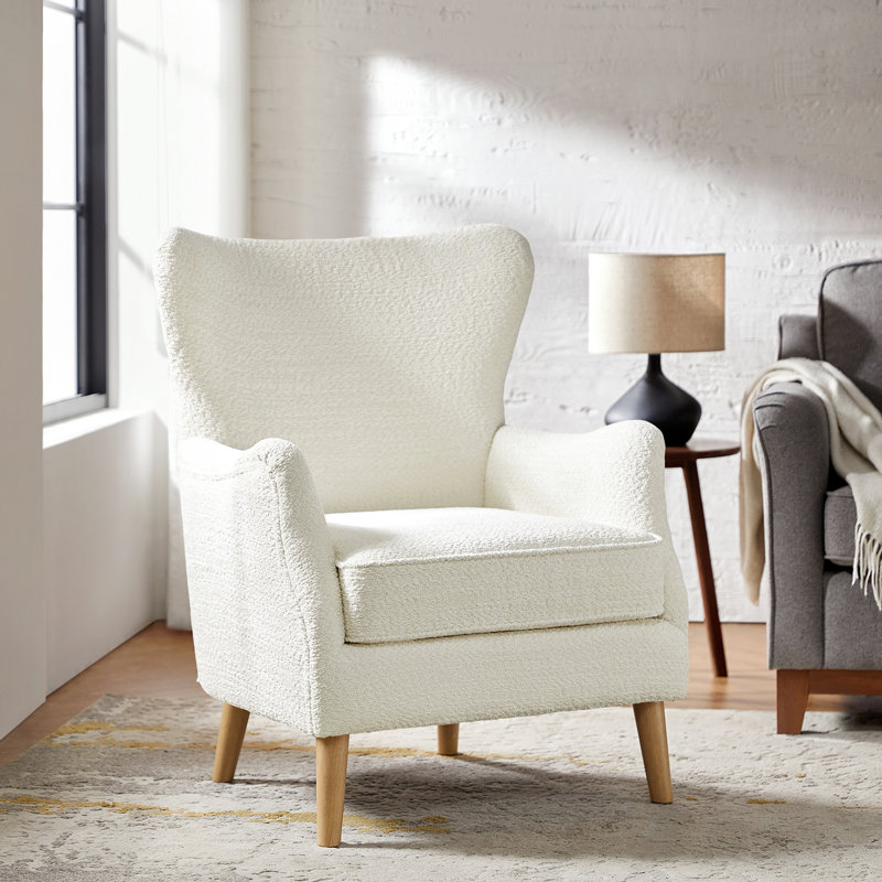 Contemporary Boucle Upholstered Wingback Armchair with Solid Wood Legs