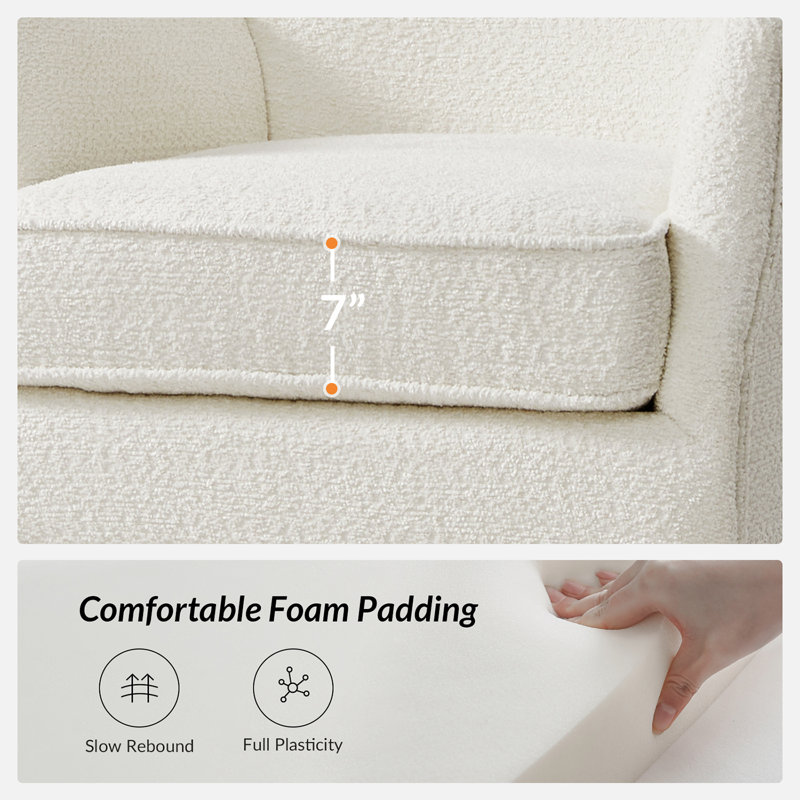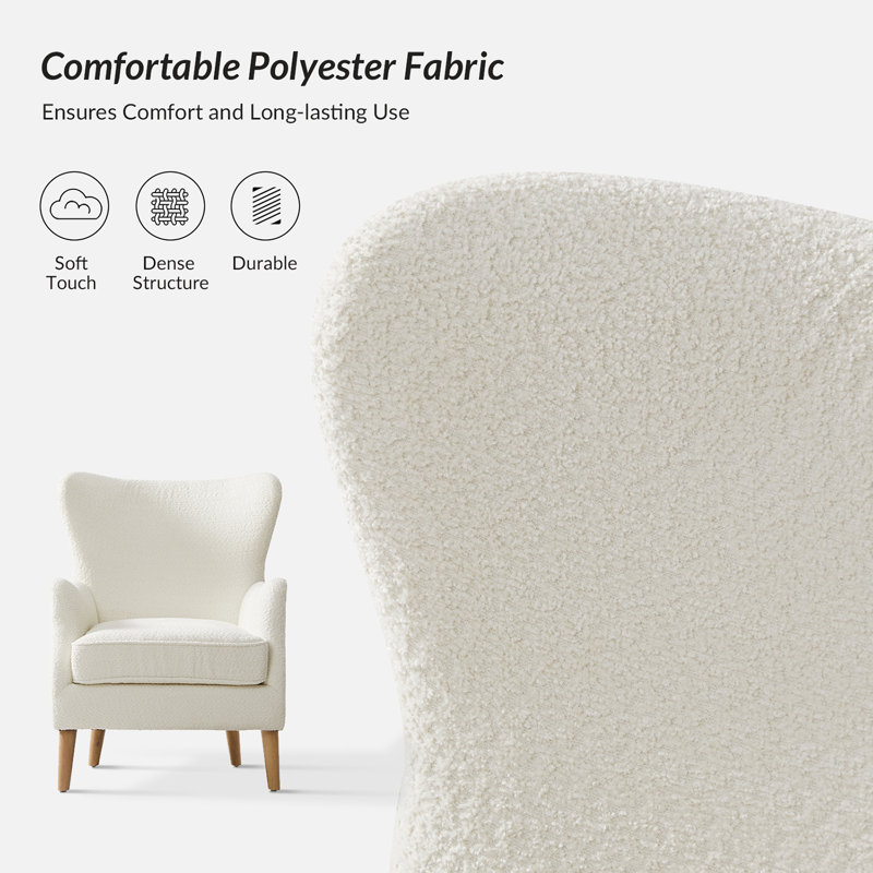 • Crafted with plush boucle upholstery and a comfortable wingback silhouette.