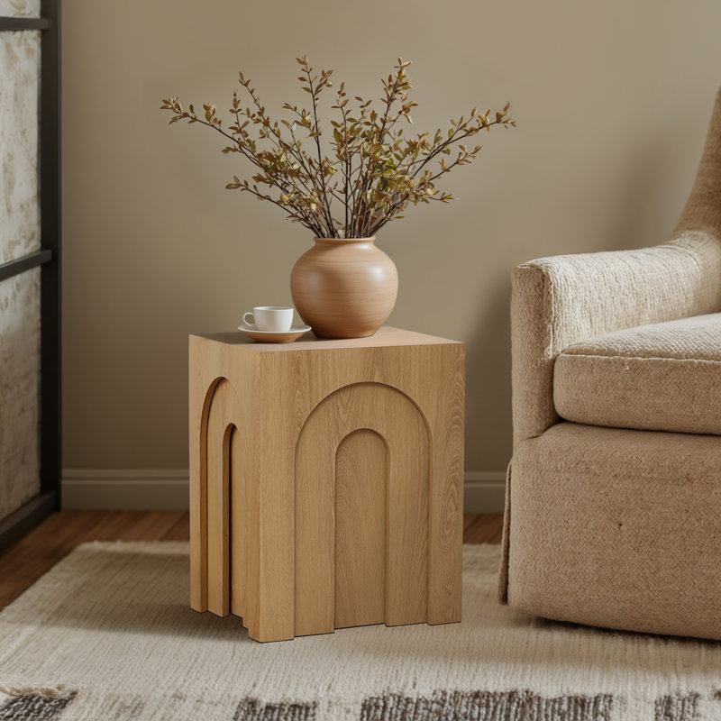 Contemporary Oak Finish Nesting Side Tables with Arched Base Design – Set of 3