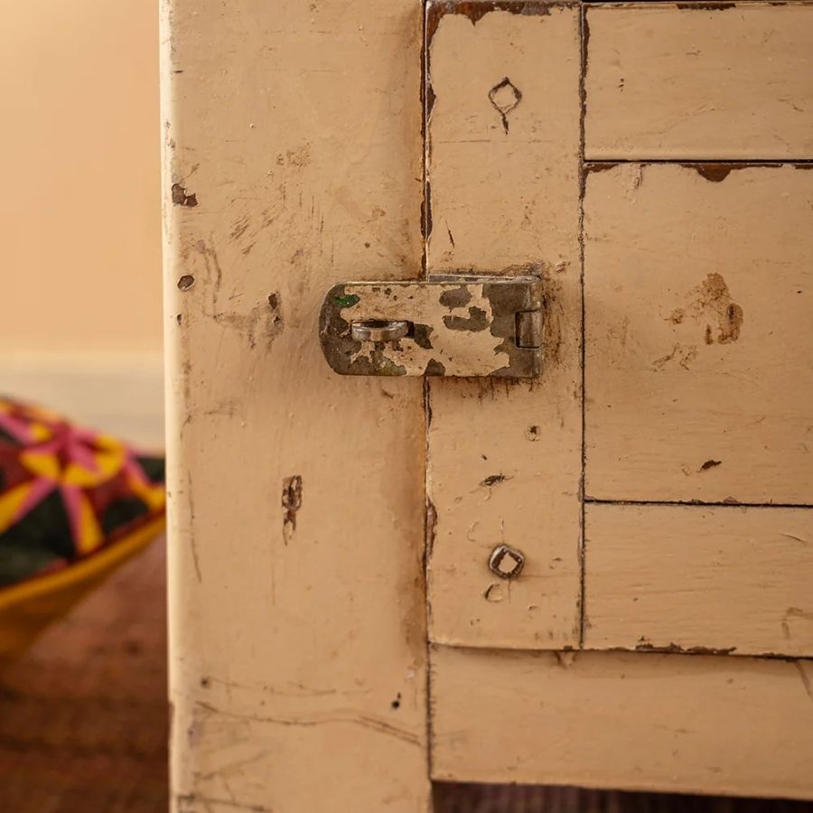 Cream Vintage Wooden Side Table with Storage Cupboard