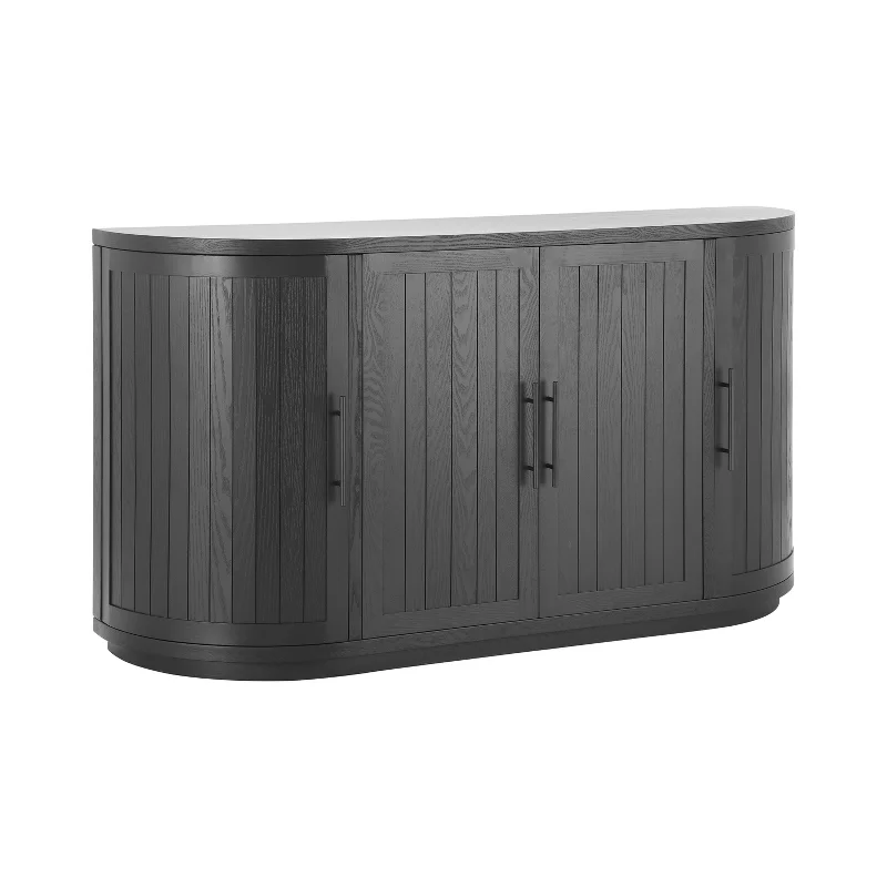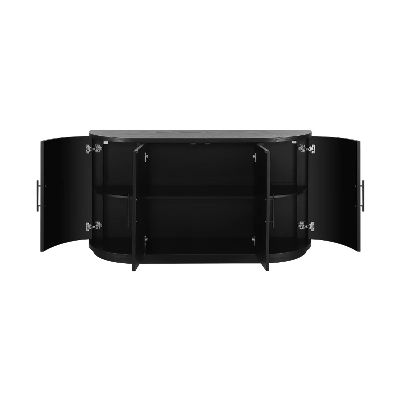 Curved Buffet Cabinet Sideboard with 4 Doors and Metal Handles