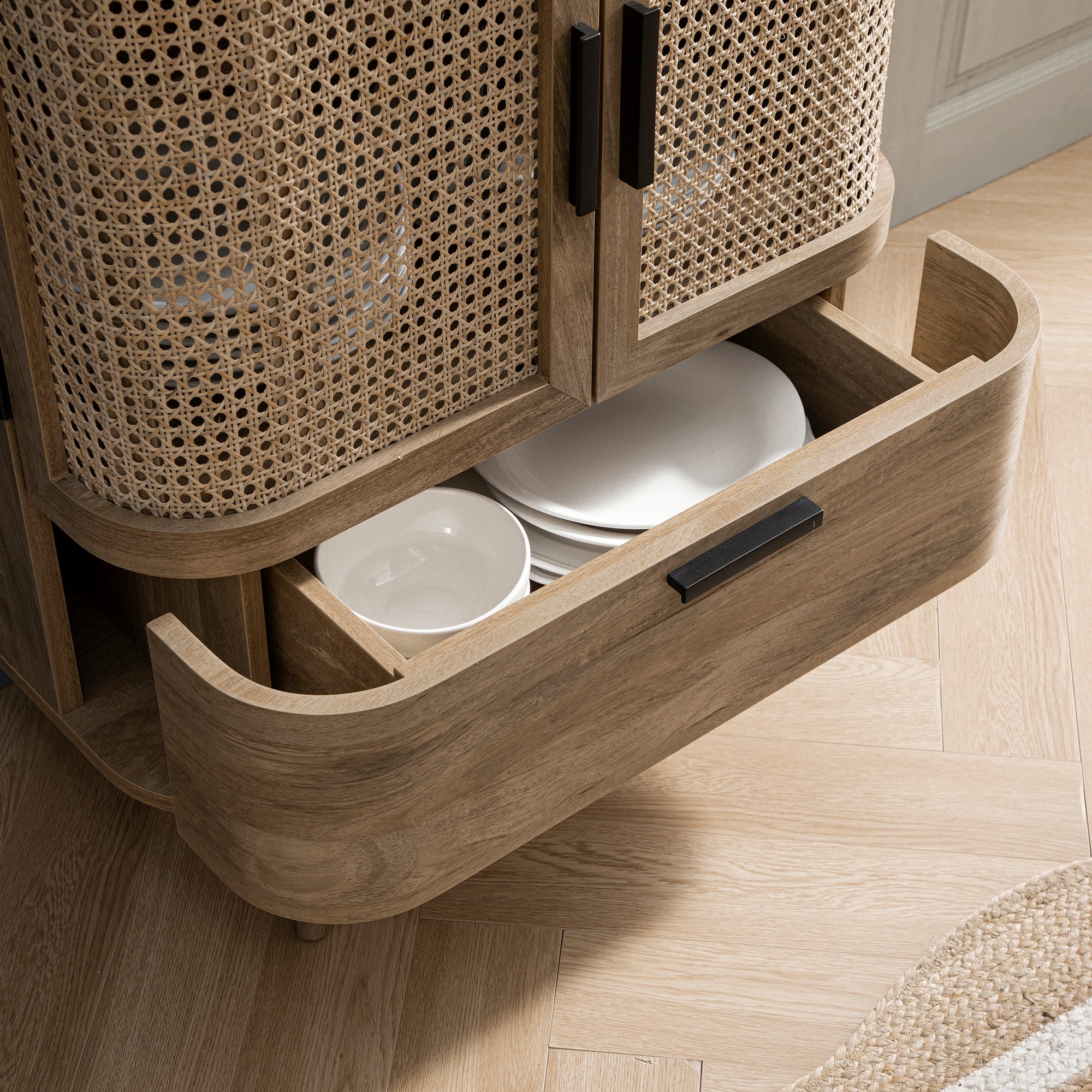 Curved Rattan 1-Drawer Small Sideboard – Natural Cane Finish