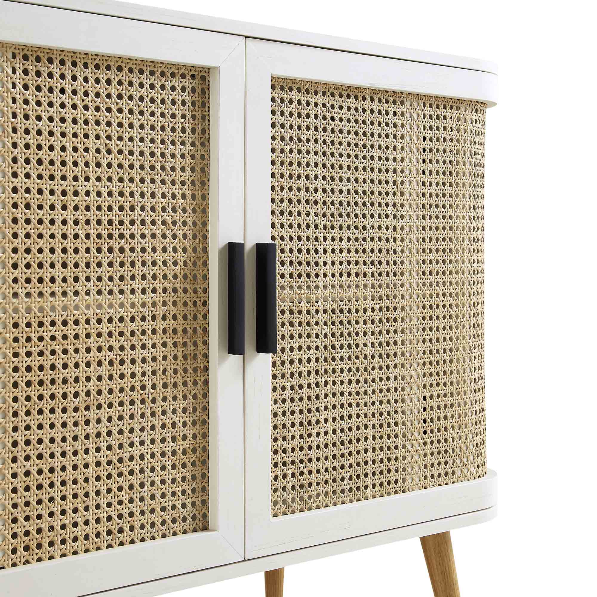 Curved Rattan 2-Door Small Sideboard – Elegant White Finish