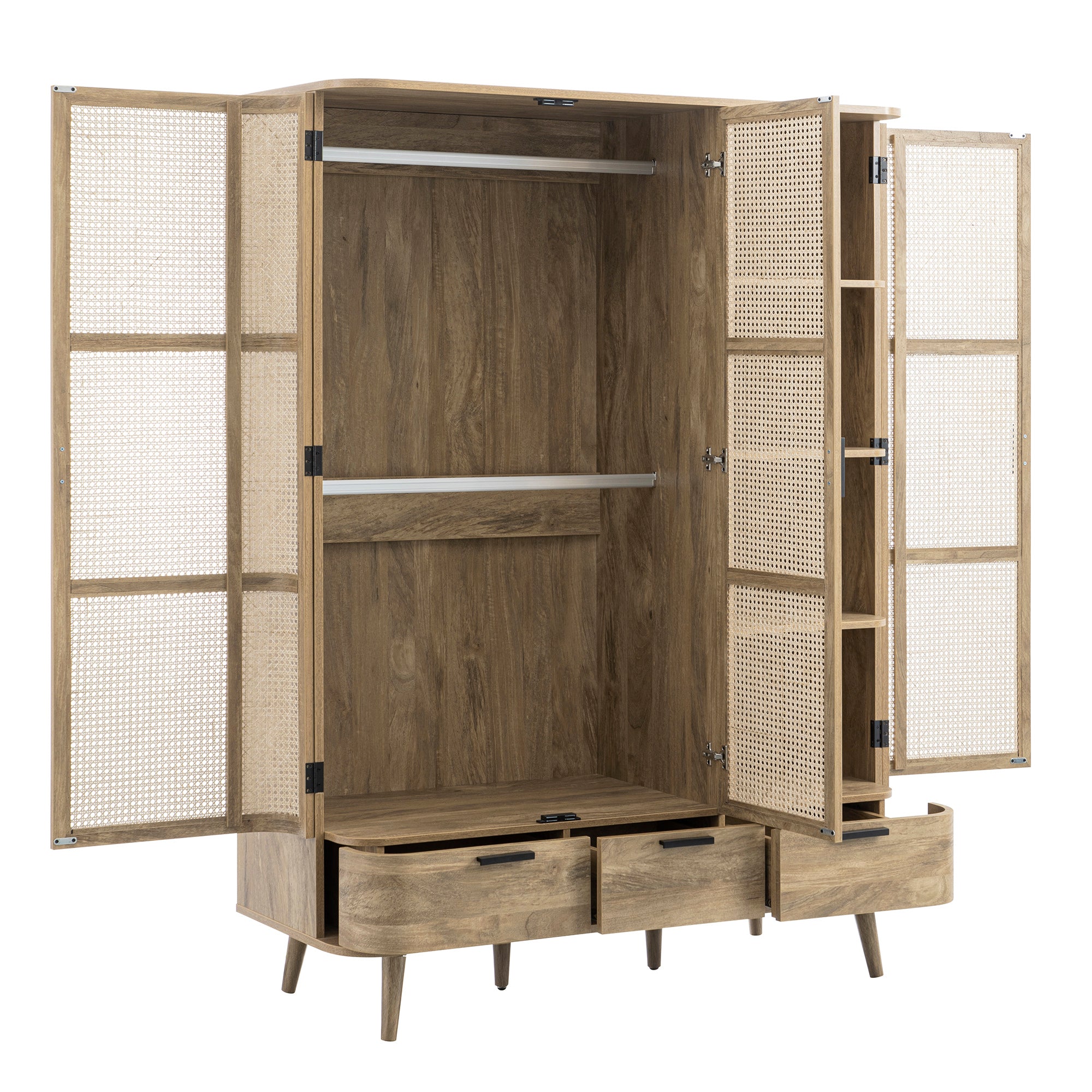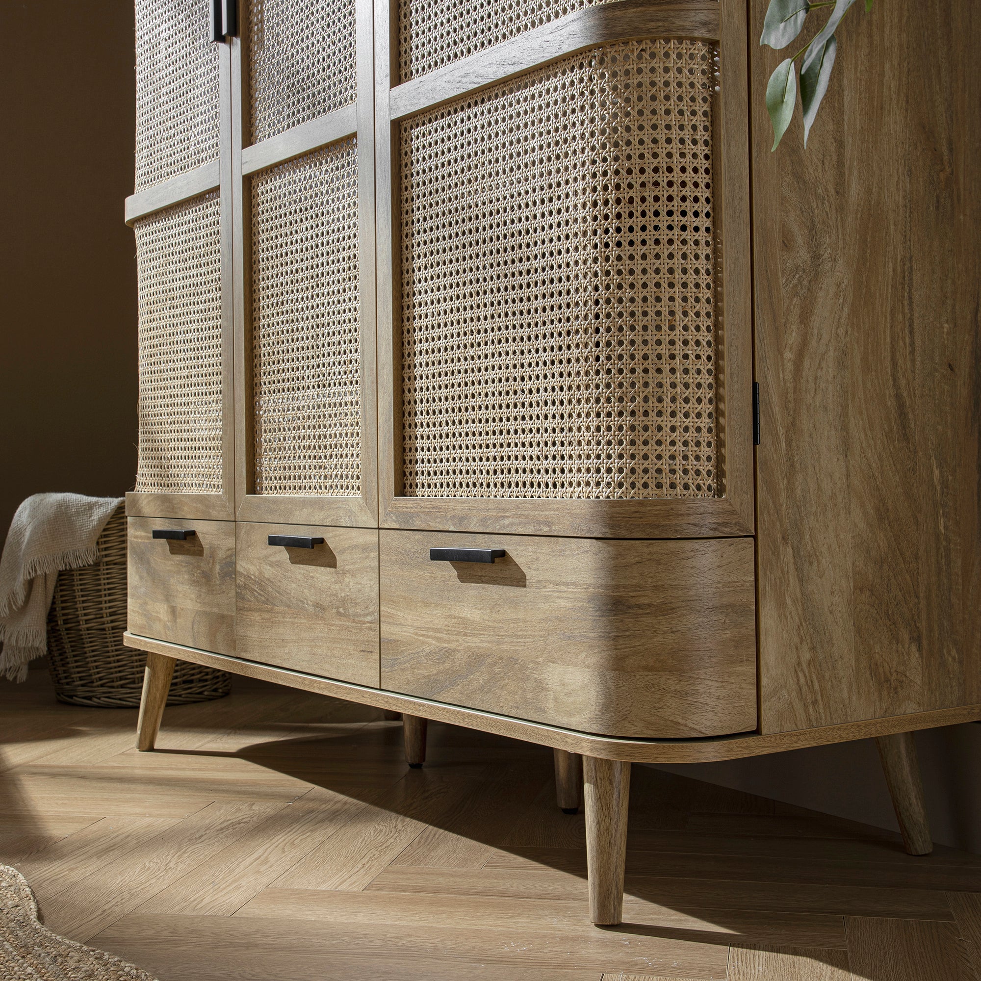 Curved Rattan Triple Wardrobe, Natural