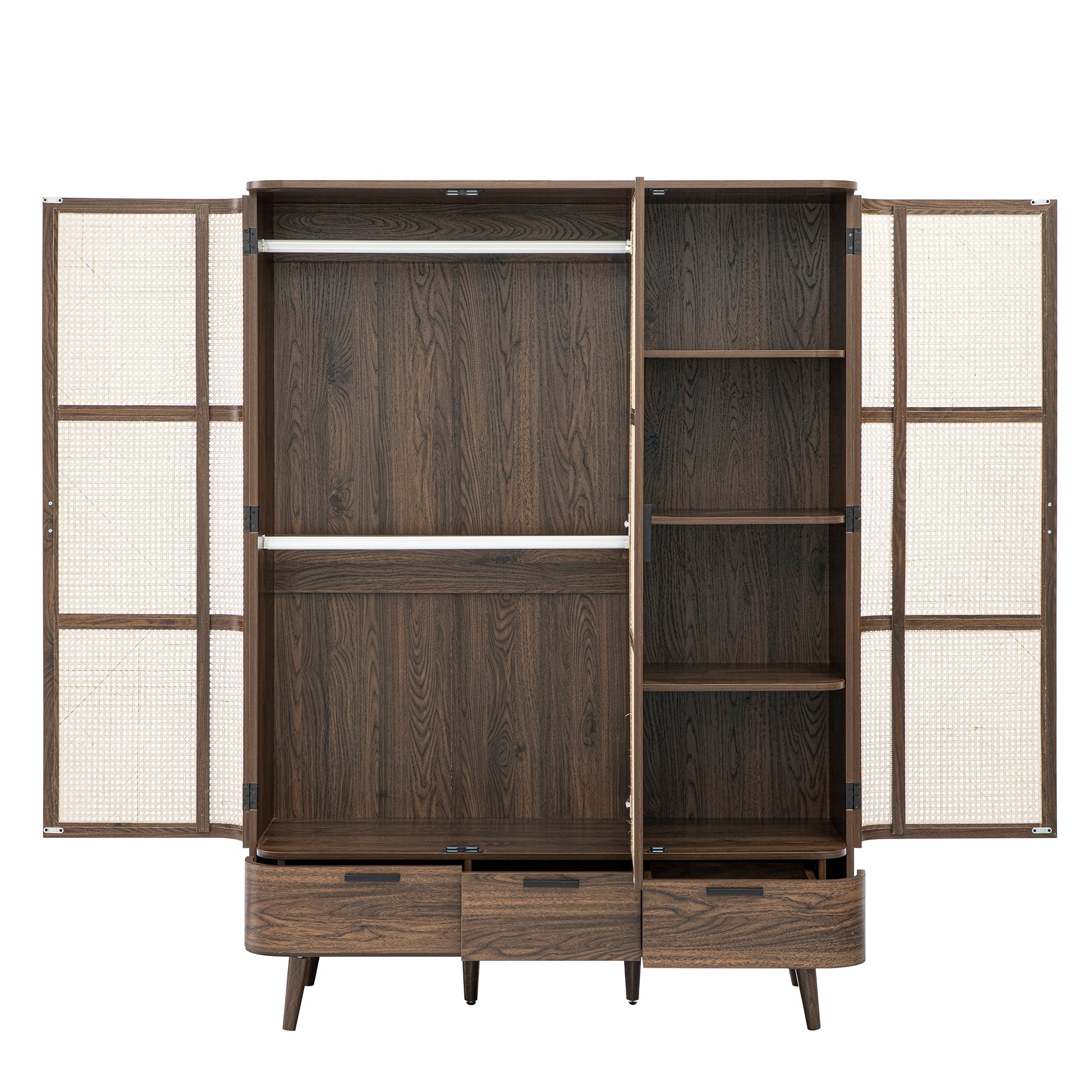 Curved Rattan Triple Wardrobe, Walnut