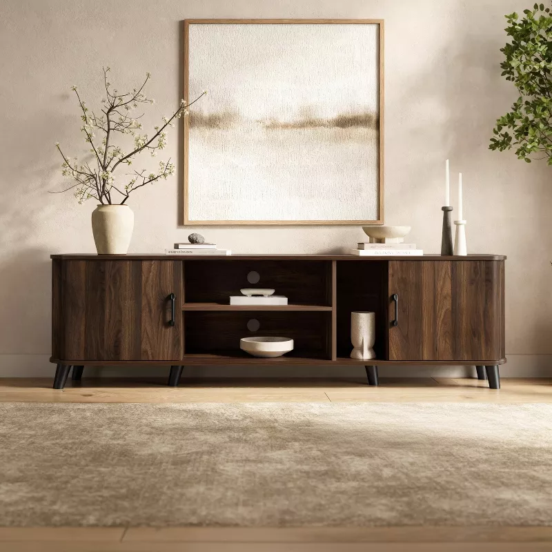 Dark Oak Manufactured Wood 71-Inch Wide TV Console Cabinet – Brown Media Stand for Up to 75-Inch TVs