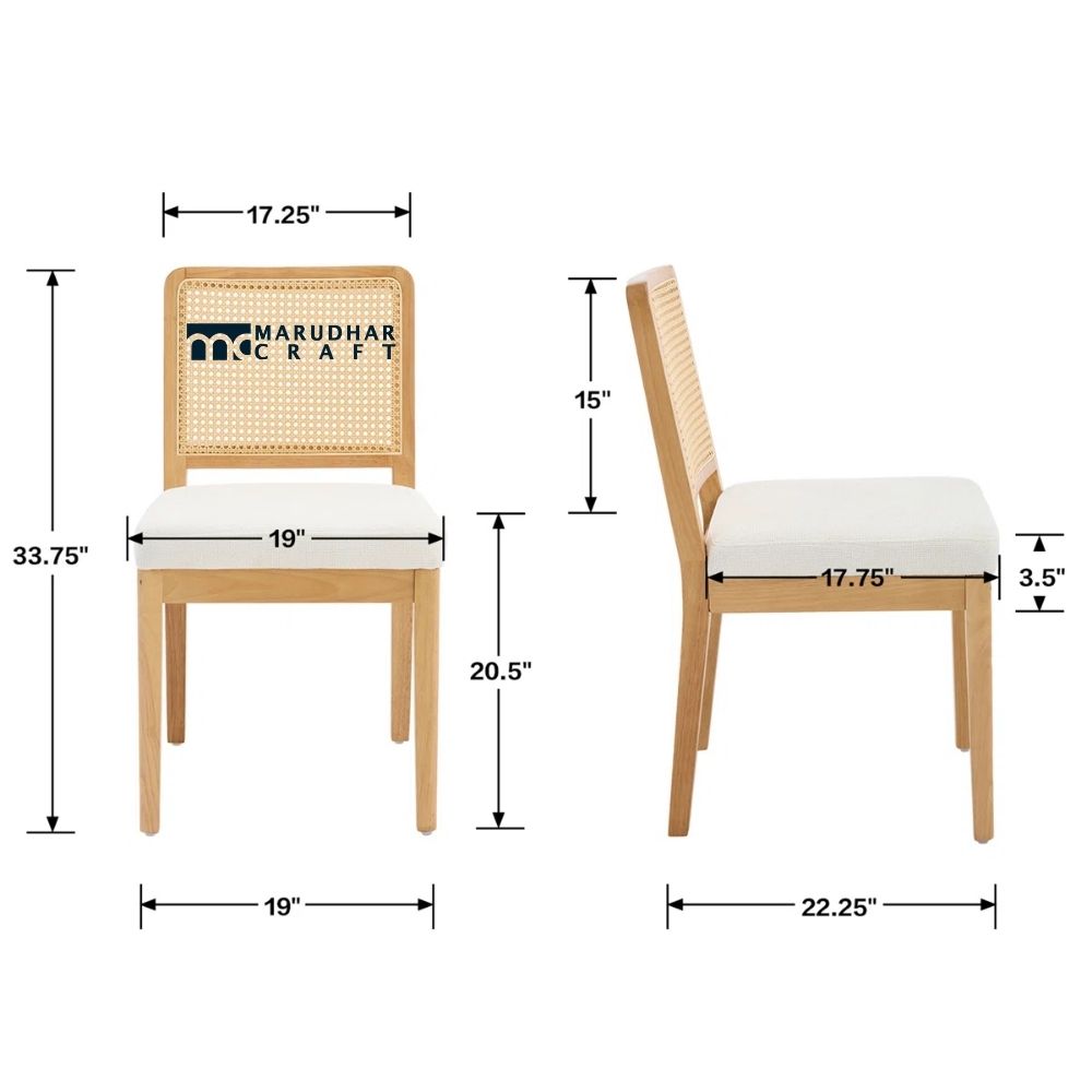 Add a warm farmhouse touch to your kitchen or dining room with these beautifully crafted dining chairs featuring a natural rattan back and a comfortable upholstered seat. Designed to suit Indian homes, these chairs bring together rustic charm and everyday comfort. The rattan backrest allows airflow and adds a handcrafted look, while the cushioned seat ensures relaxed seating during long meals.