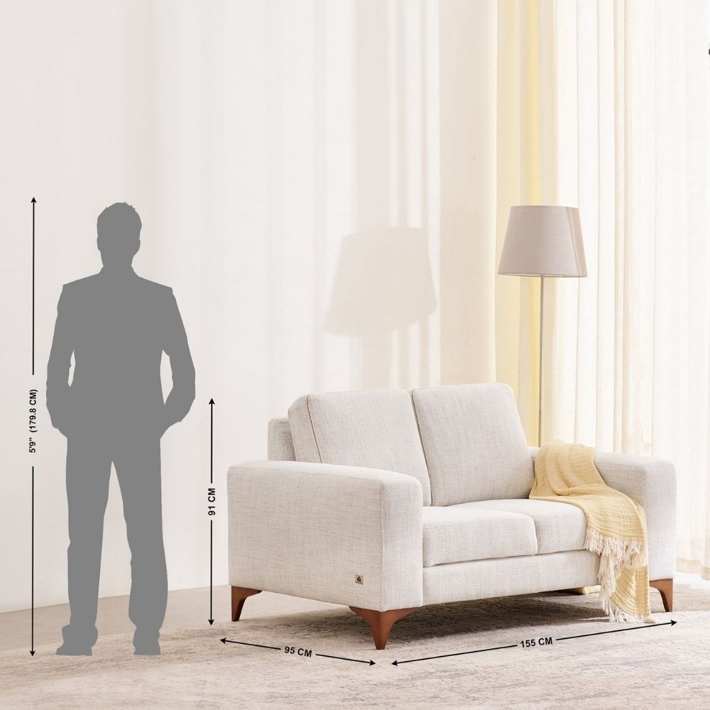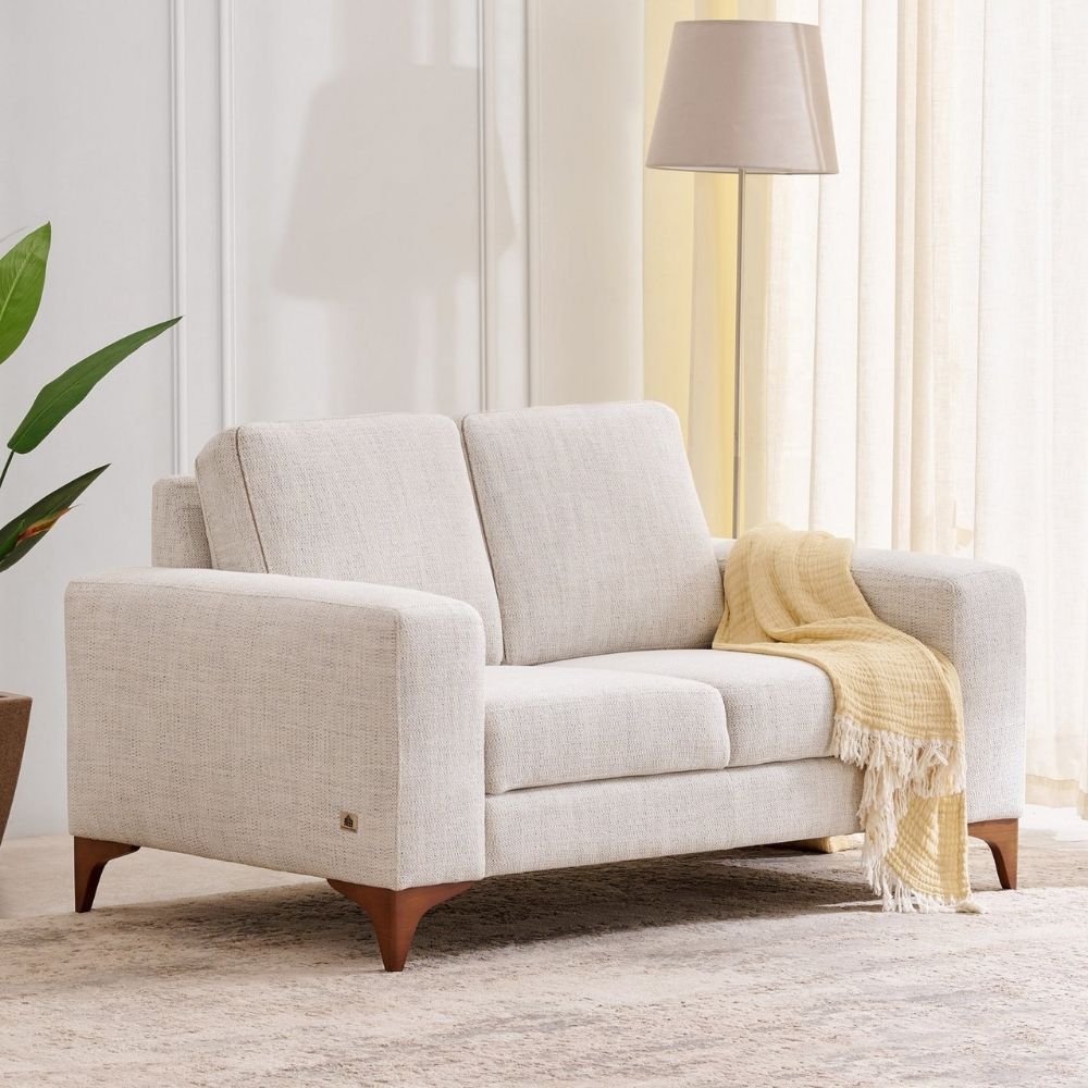 This 2-seater sofa from Home Centre is elegant and brings an element to your living room. The frame is constructed from pretreated pine wood, making it stable, elastic, lightweight, and resistant to moisture and wood infestation. Corner blocks enhance stability during movement, and the sturdy wooden legs with foam seating add to its comfort. The seat construction features full core HDR PU foam and pocket springs, offering firm, resilient comfort. The sofa incorporates a webbing and zigzag spring system with 3.8mm mild steel wires in an anti-corrosive powder-coated finish, clipped to the frame with metal clamps for uniform seat comfort. This sleek modern sofa is upholstered with durable, high-tensile strength polyester fabric, which is synthetic, easily recyclable, antimicrobial, and anti-allergenic.