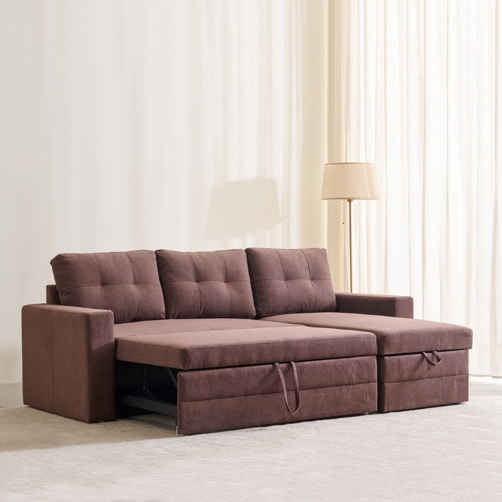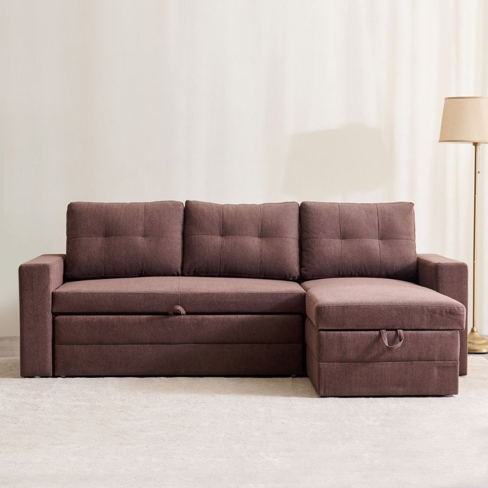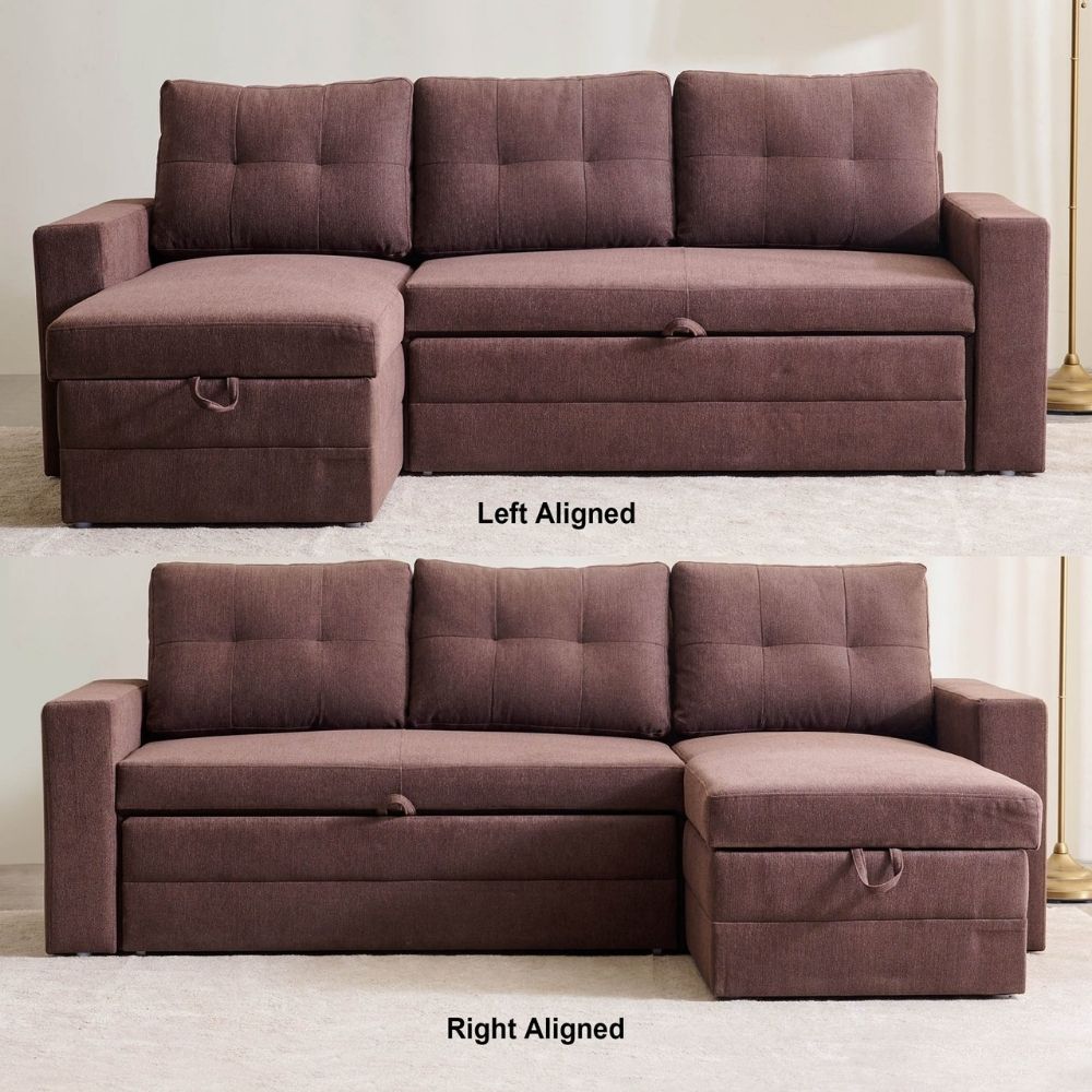 Fabric 2-Seater Storage Sofa Bed with Interchangeable Chaise – Brown