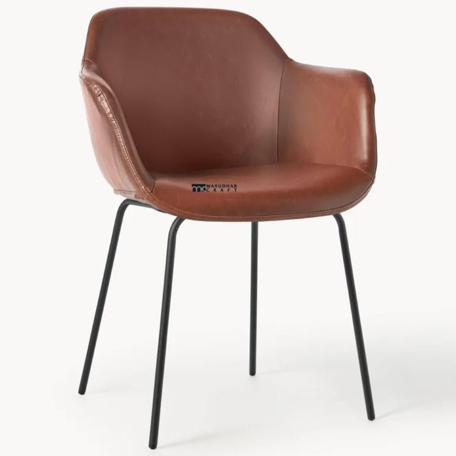 Enhance your dining space with this premium modern dining chair upholstered in rich tan brown faux leather. Designed with a wraparound backrest and padded seat, this chair offers superior comfort and a luxurious look. Supported by sleek powder-coated metal legs, it ensures excellent stability and durability. Perfect for dining rooms, cafés, restaurants, or modern office spaces, this chair blends elegance with everyday functionality.