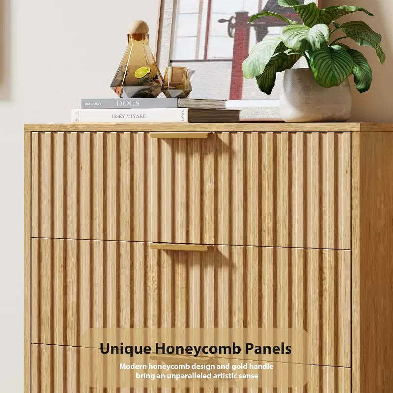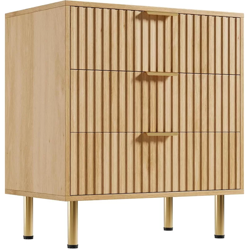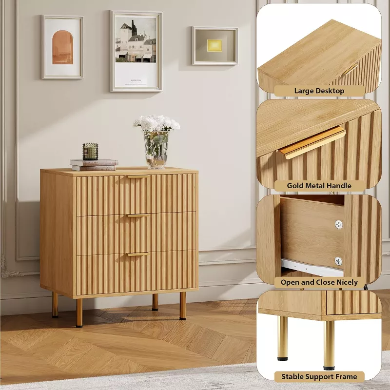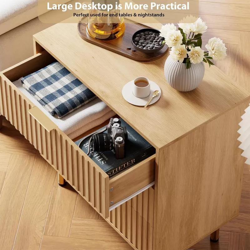 Fluted Modern Nightstand Chest of Drawers with Deep Storage