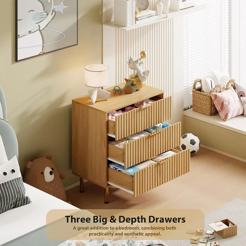 This fluted modern nightstand combines stylish design with practical storage. Made from high-quality MDF with a beautifully textured fluted finish, it adds a contemporary and elegant touch to any bedroom or living space. With three deep drawers, this chest of drawers provides ample space for storing books, clothes, personal items, and daily essentials, keeping your room neat and organized. Its wide top surface is perfect for lamps, décor, or bedside accessories.