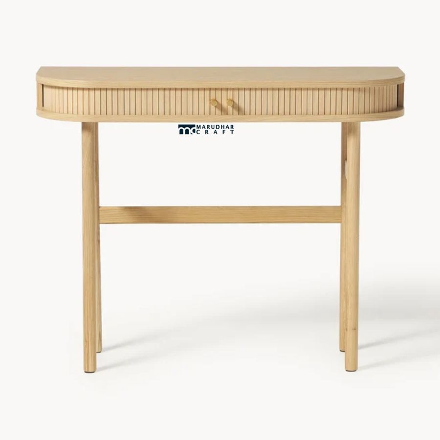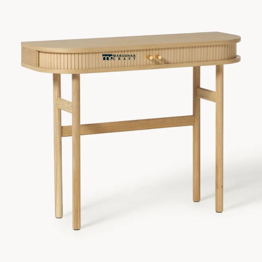 Fluted Solid Wood Console Table with Drawer – Natural Finish