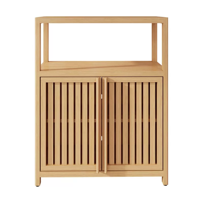 This freestanding bamboo sideboard organizer is a perfect blend of natural beauty and everyday functionality. Made from eco-friendly bamboo with a smooth bamboo veneer finish, it brings a fresh and modern look to any space. Its slim, space-saving design makes it ideal for use in bathrooms, kitchens, entryways, bedrooms, or living rooms. The divided interior storage and double-door cabinet help keep your essentials neatly organized and easy to access.